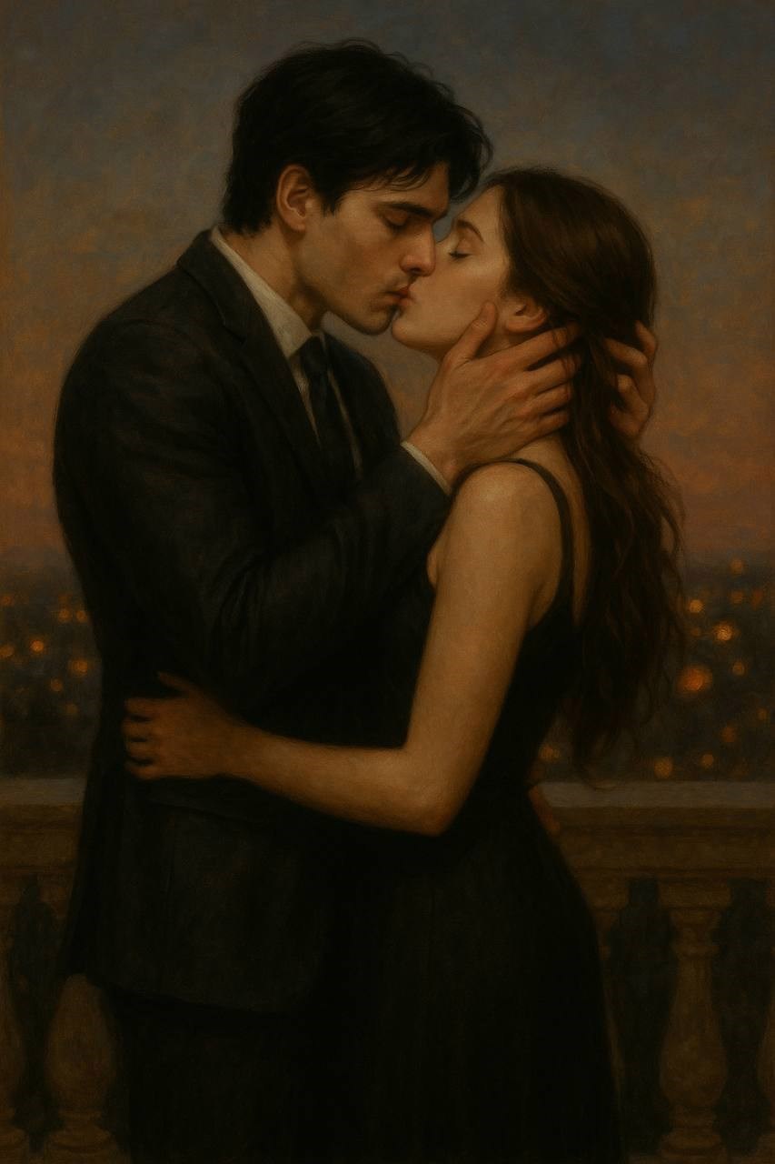 Мия и Виктор в Чехии Автор: Attel1letta Иллюстрация к истории «Вечность сквозь тебя» вечер, вампиры, поцелуй, романтика, персонажи, нейросеть, иллюстрация 19 Пожаловаться