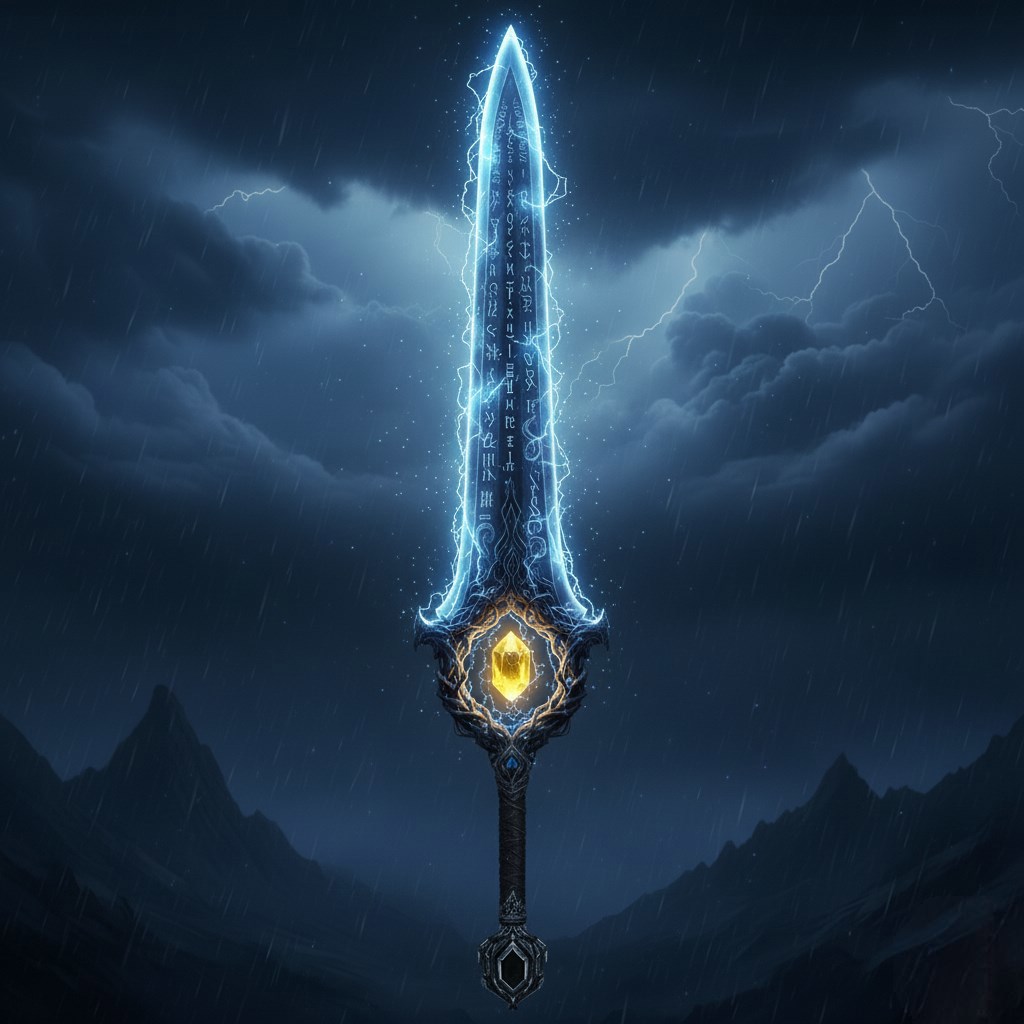 - В бою выглядит как клинок из множества разрядов молнии, рассыпающий искры во все стороны.