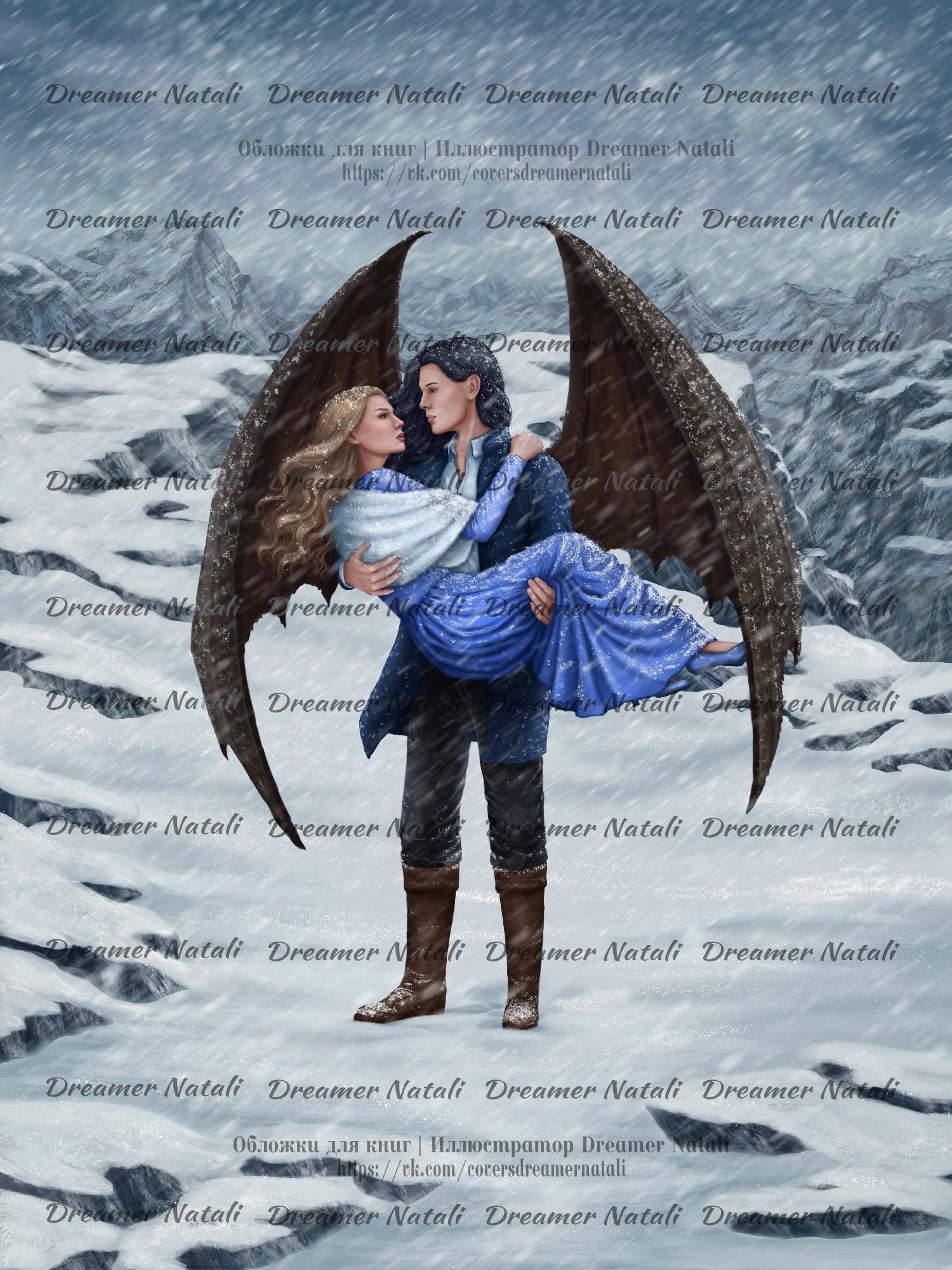 Зимний арт с драконом, свободный для покупки. Могу изменить цвета или какие-то детали по договоренности)