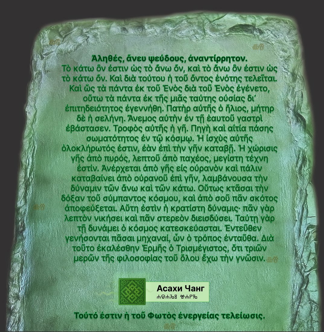 По сети ходит похожая фейковая версия, язык которой не имеет ничего общего с Изумрудными скрижалями