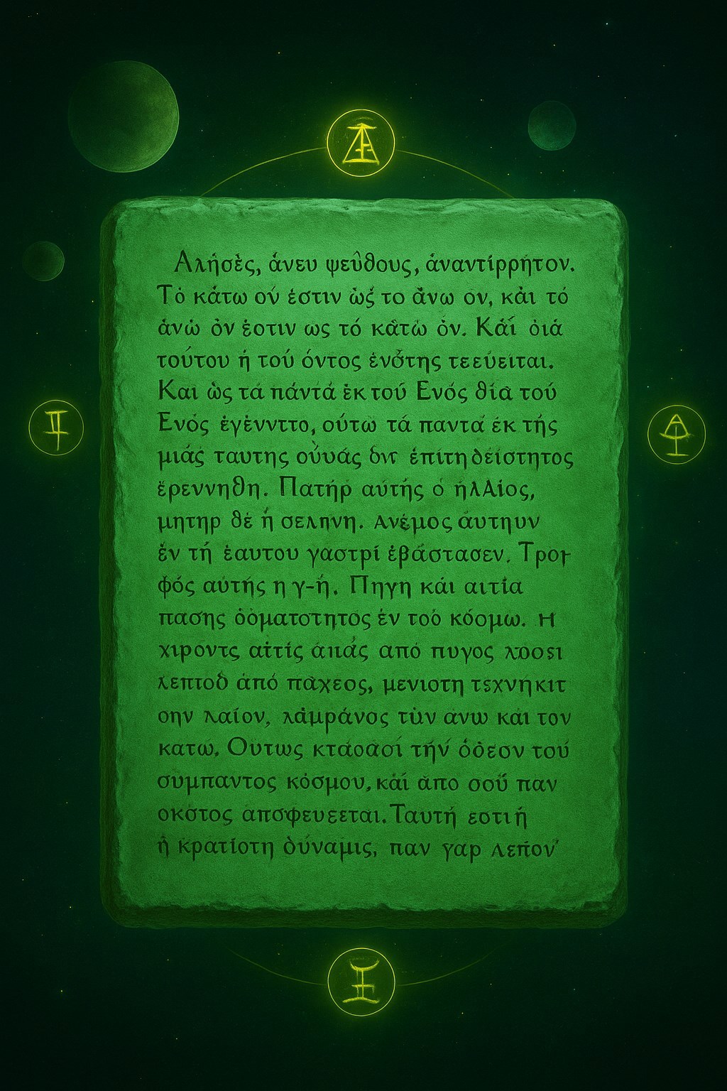 Изумрудная скрижаль Гермеса Трисмегиста на греческом