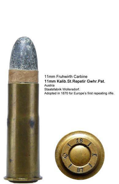 Для стрельбы из австро-венгерского карабина пограничной стражи Früwirth M1872 Gendarmerie Carbine использовались 11,15х36 мм патроны (11.15х36 R) .