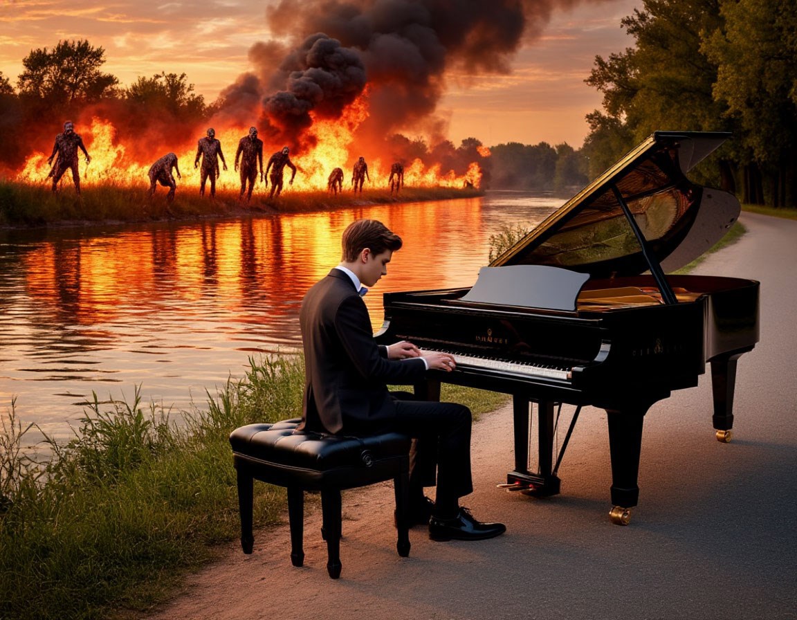 В 11й главе романа в стишках "Тёма и Рояль" наш герой объединил свой старый скилл - огеннный этюд - от которого горели зомби в большом театре, с новым скиллом "Марш Ветра", который он получил на 7м левеле. Получился Огненный Ветер, с помощью которого Тёма сумел сжечь зомби на другом берегу реки. Подробности в бложике: https://author.today/post/713517