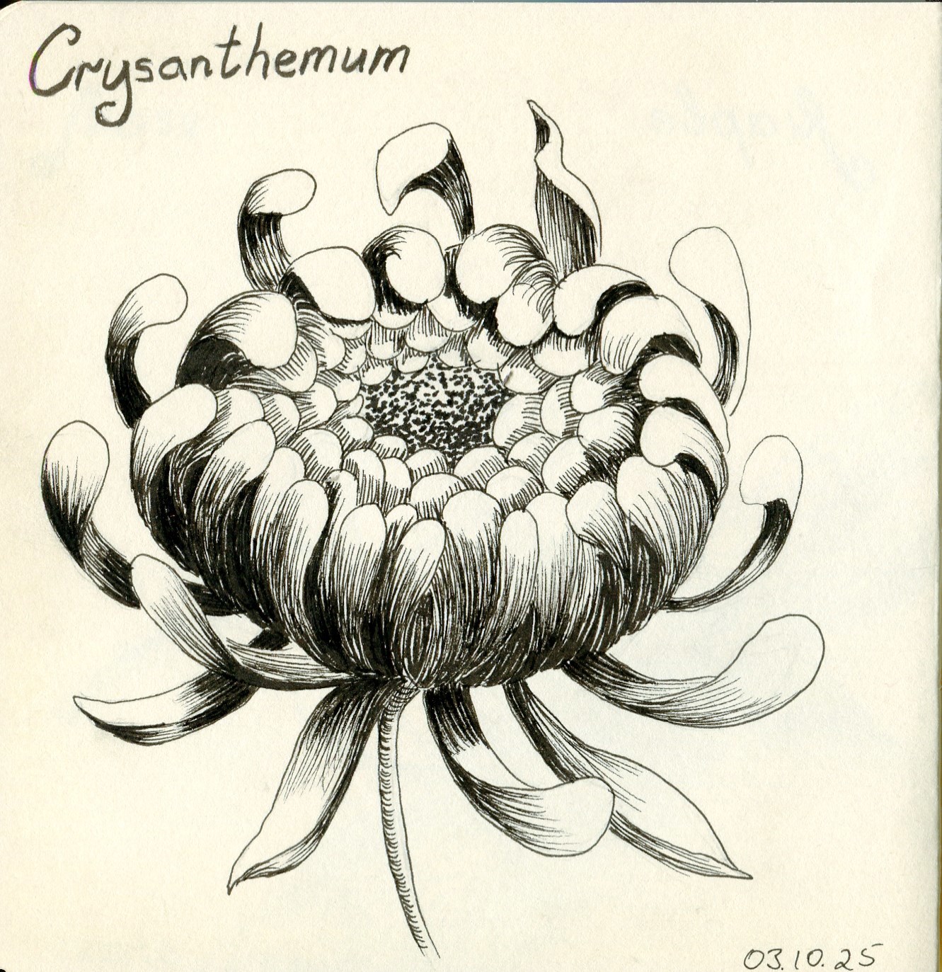 Хризантема - плантябрь 2025 Автор: Наталья Болдырева День третий цветы, plantober, линеры, inktober, графика, инктобер 25 Пожаловаться