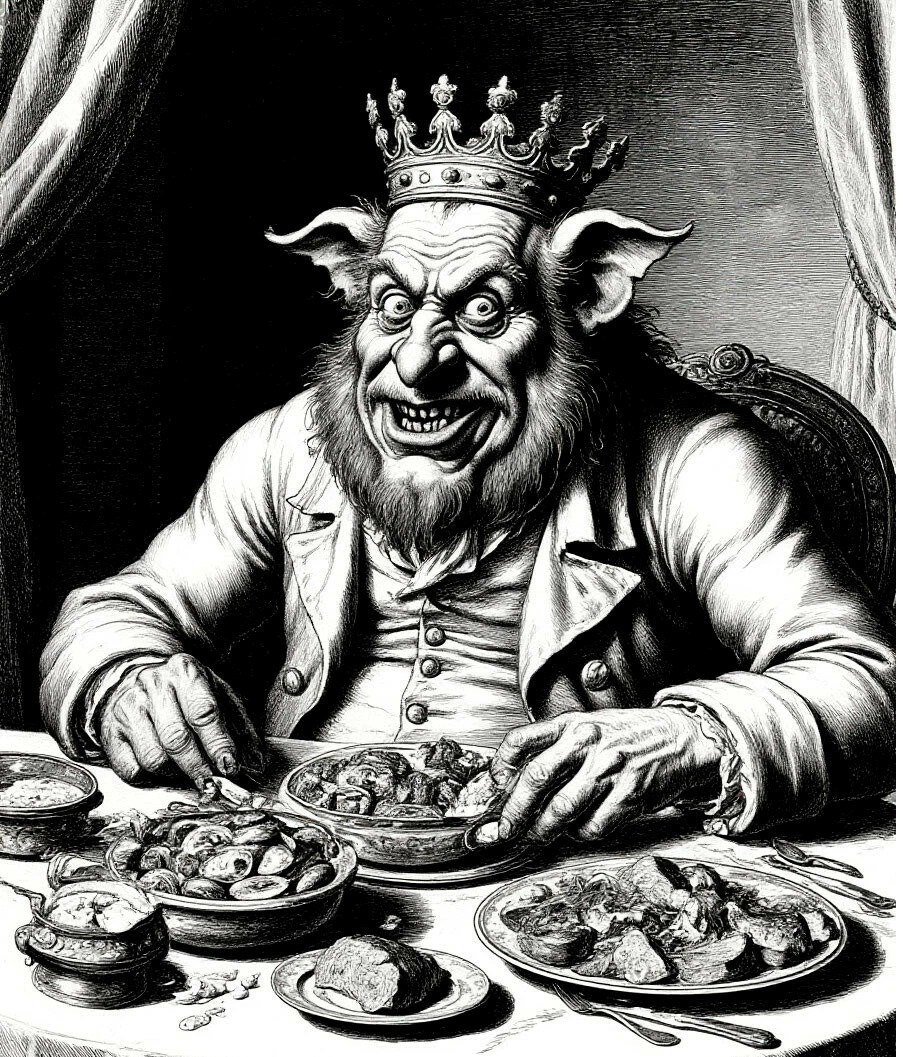 Обжорство Автор: Александр Самойлов Такой рисунок вполне мог украшать газетные страницы в середине 19 века. компьютерная графика, арт, графика, рисунок, нейросеть 69 Пожаловаться