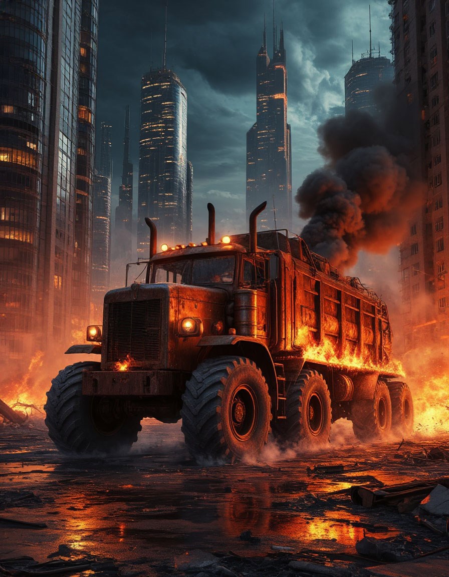 Объятый пламенем тягач, оставляя горящий след, в клубах дыма, со скрежетом и жутким грохотом покатился дальше. https://author.today/reader/481515/4538599