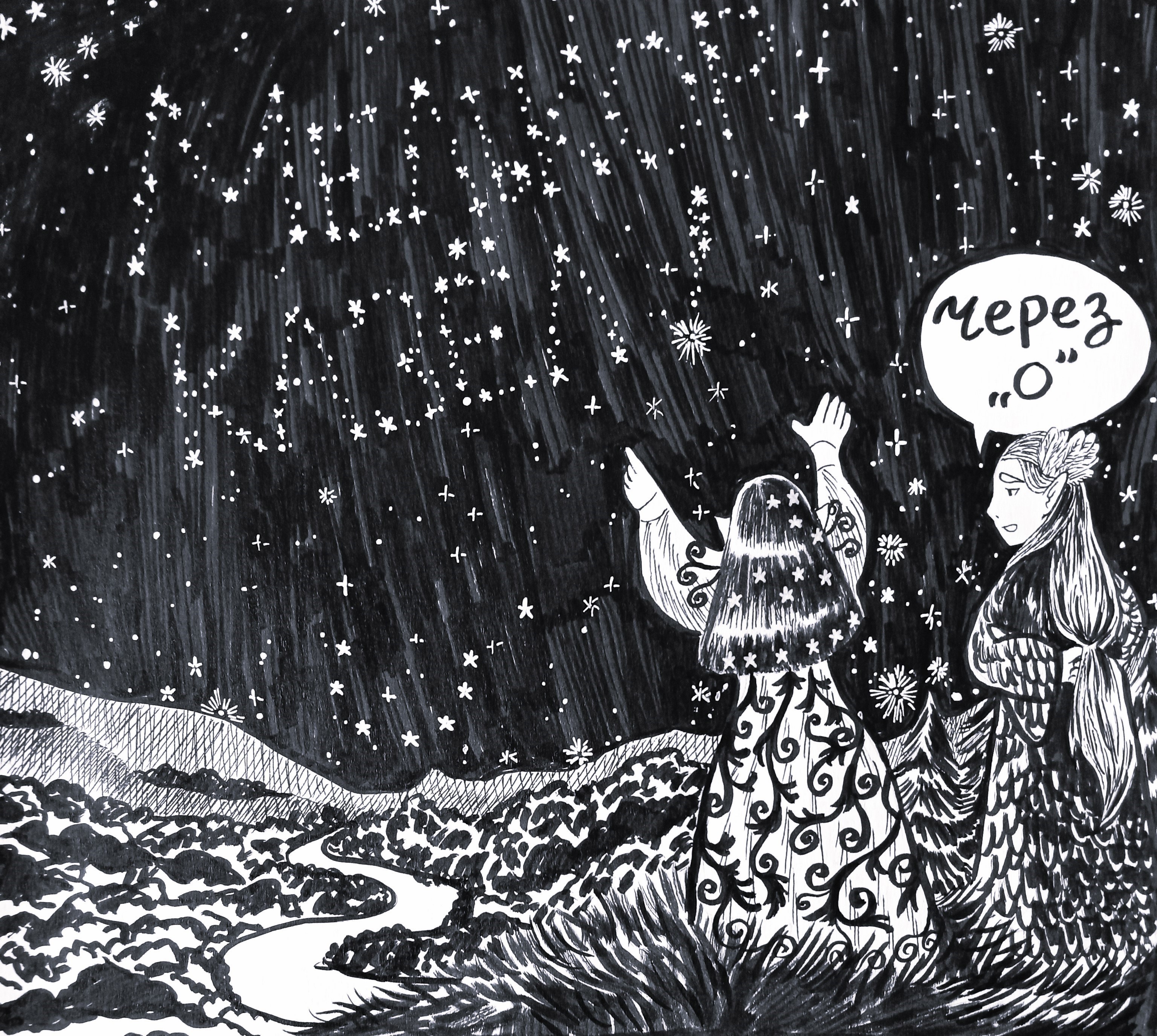 Инктобер 2025 - №5 Автор: Margery Eos Тема - Сильмариллион. Варда - создатель звёзд и созвездий, наполняет светом небо. Рядом Манвэ - её муж. 15 Пожаловаться