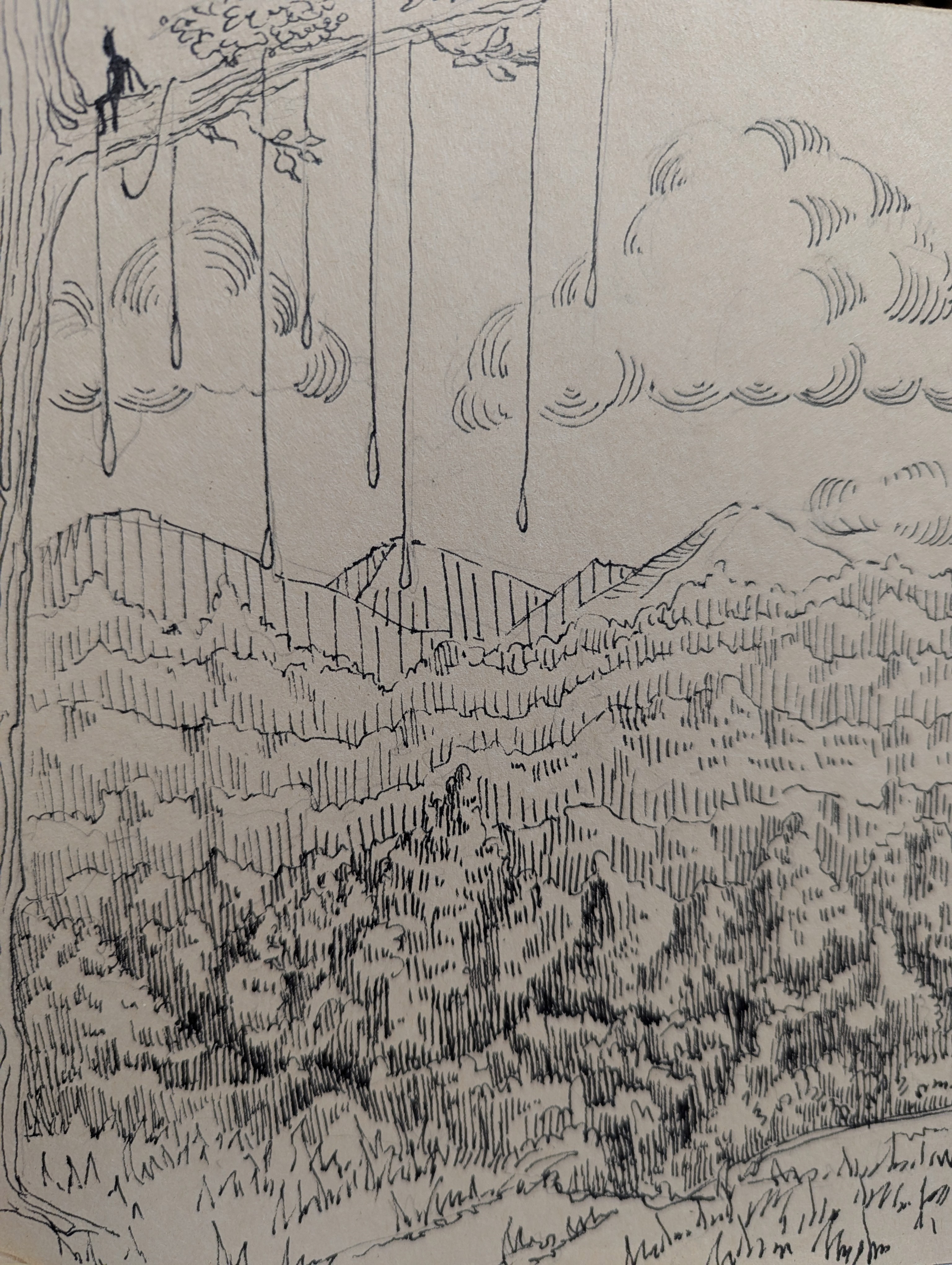 Я снова с походным скетчбуком. Рисую, что в голову придет. Что это не спрашивайте.