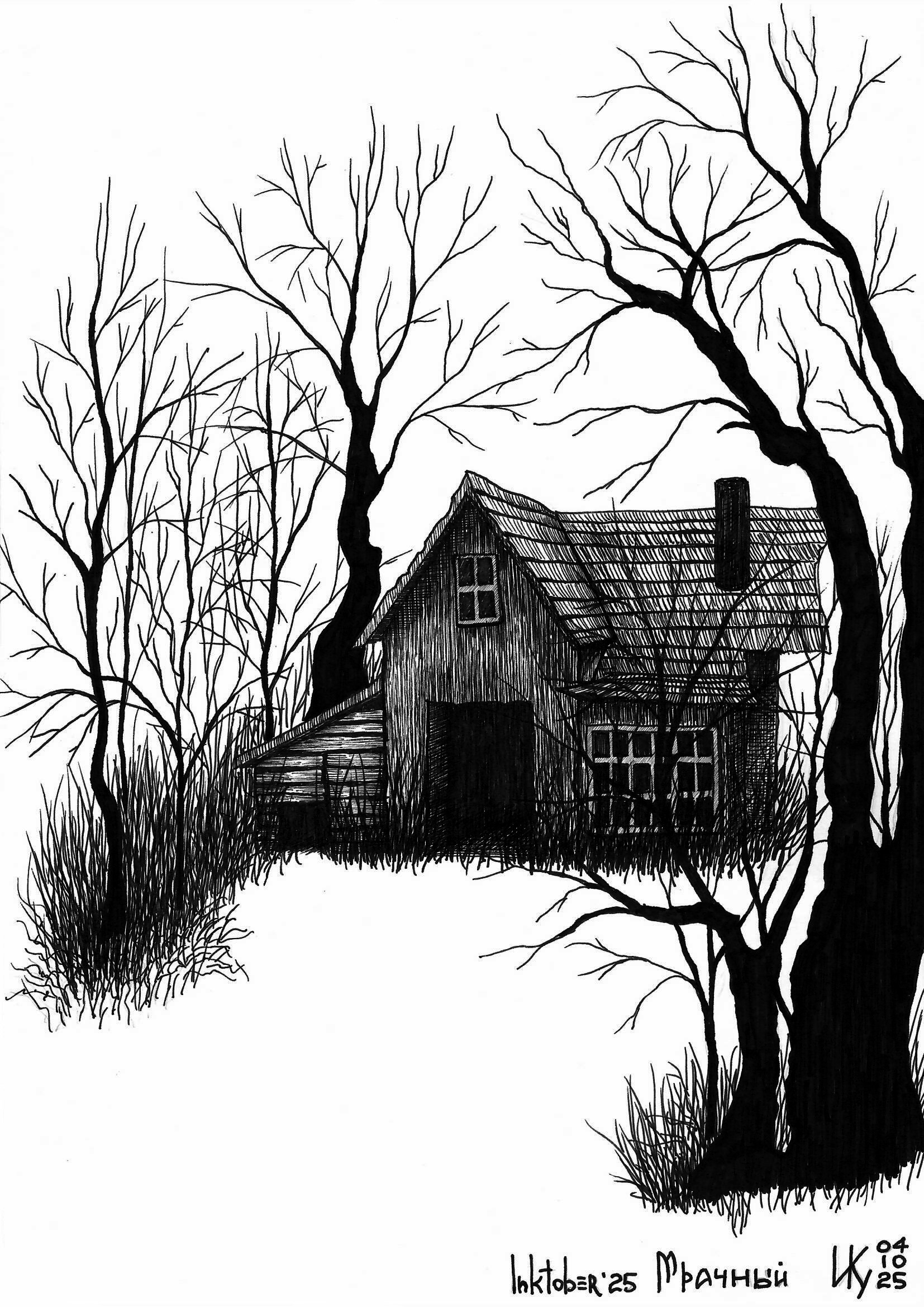 Инктобер 04/2025. Мрачный, тёмный Автор: Ира Ку С "мутным" не задалось, потому будет очередной "мрачный", "тёмный" домик. несерьёзныекартинки, блинкомом, инктобер 2025 27 Пожаловаться