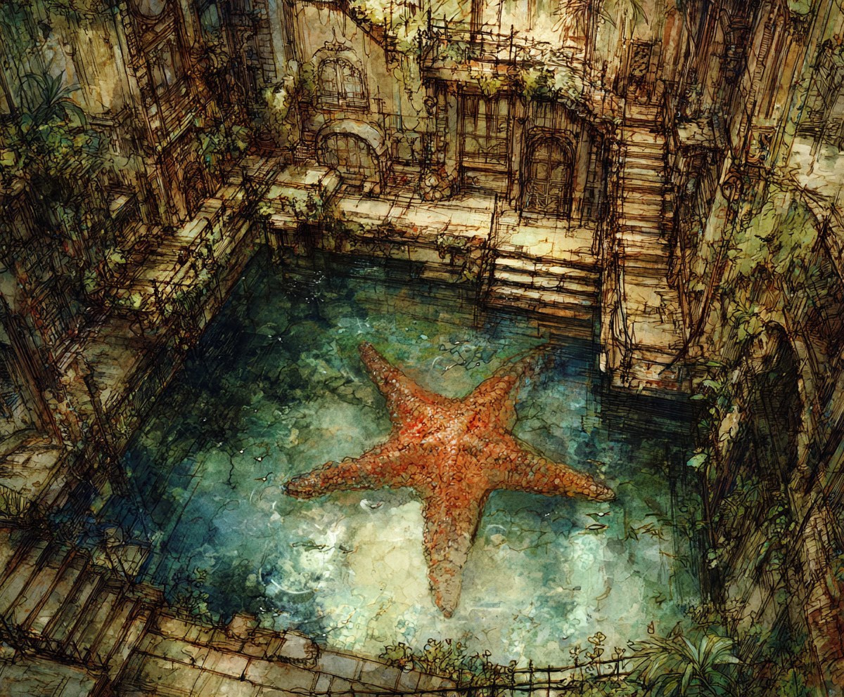 starfish. Cinematic scene. Art by Anton Pieck --chaos 30 --ar 6:5 --profile iomhvnn --stylize 150