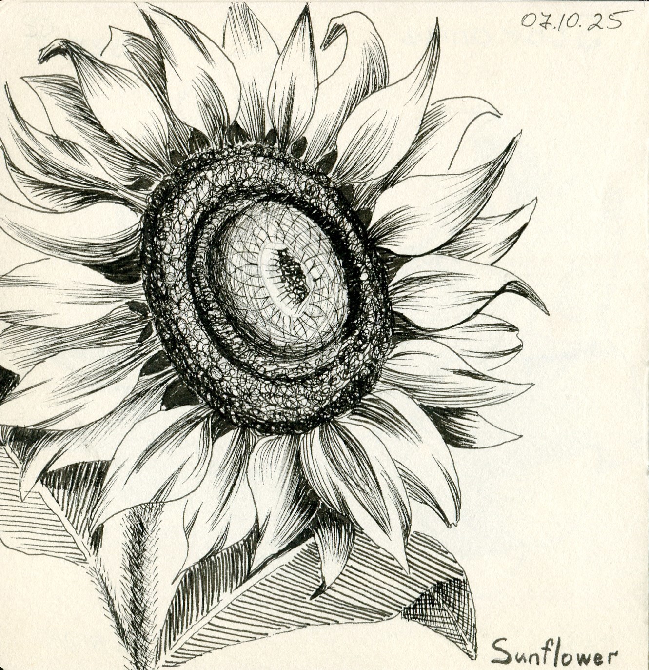 Подсолнух - плантябрь 2025 Автор: Наталья Болдырева День седьмой цветы, plantober, линеры, рисунок линером, inktober, графика 34 Пожаловаться