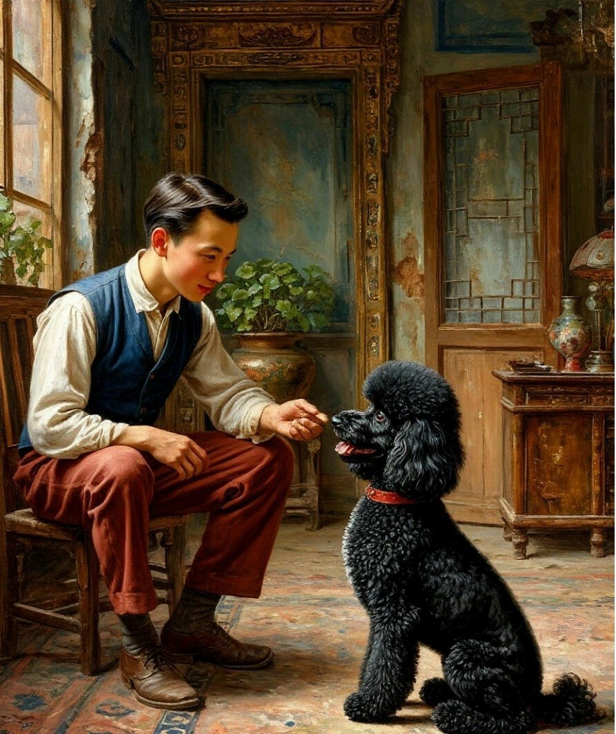 Чёрный пудель Автор: Александр Самойлов Ещё немного китайских бытовых зарисовок. компьютерная графика, арт, графика, рисунок, нейросеть 45 Пожаловаться