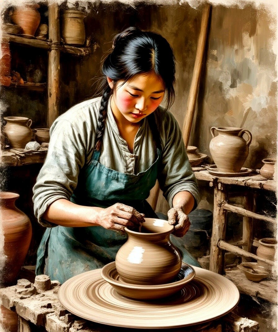 Пустила глину по кругу Автор: Александр Самойлов Девушка гончарит себе потихоньку... графика, рисунок, нейросеть, арт, компьютерная графика 41 Пожаловаться