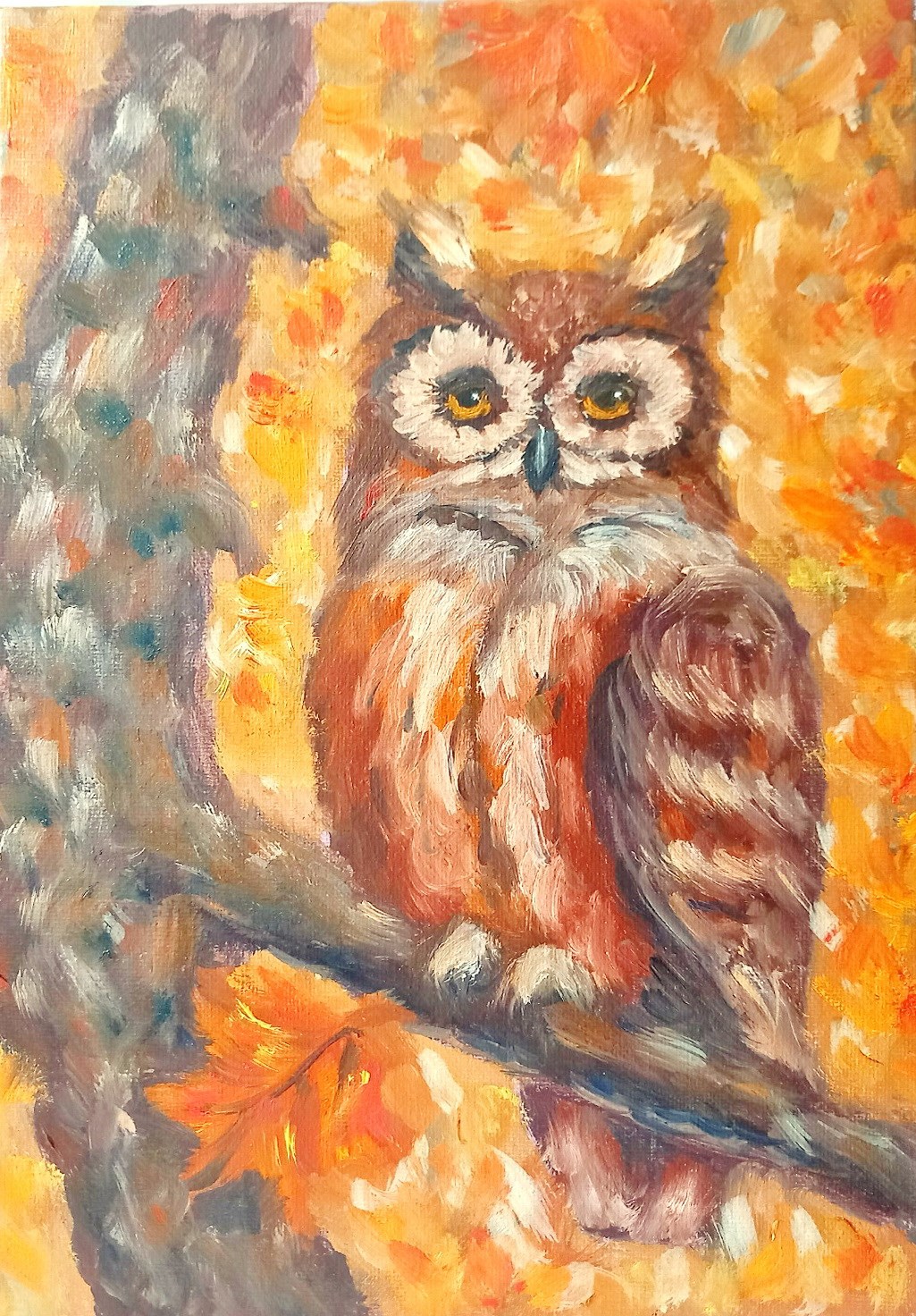 Ой каких мы сов написали маслом на пару со взрослой ученицей! Очень довольны. Размер холста небольшой, 20х30.