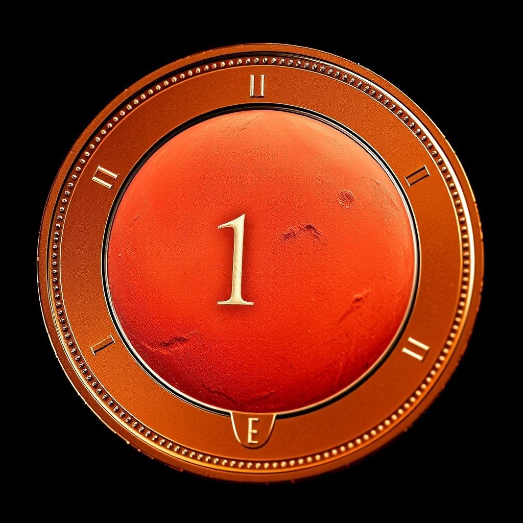 В центре монеты изображена планета Марс, на фоне планеты единица.