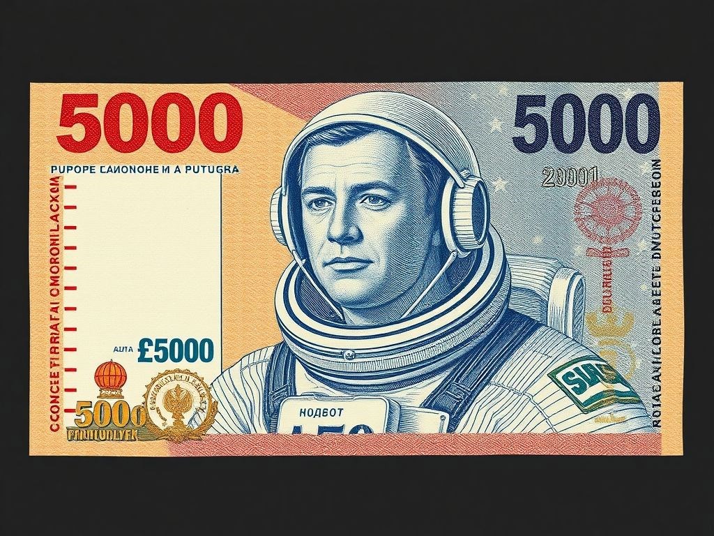 Купюра представляет собой слияние купюр в 5000 долларов США и 5000 рублей РФ.