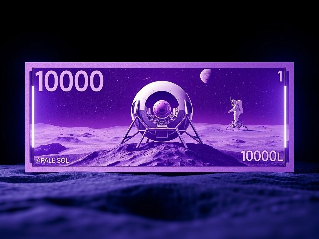 В центре купюры изображен аппарат Апполон-11, а также Нил Армстронг.