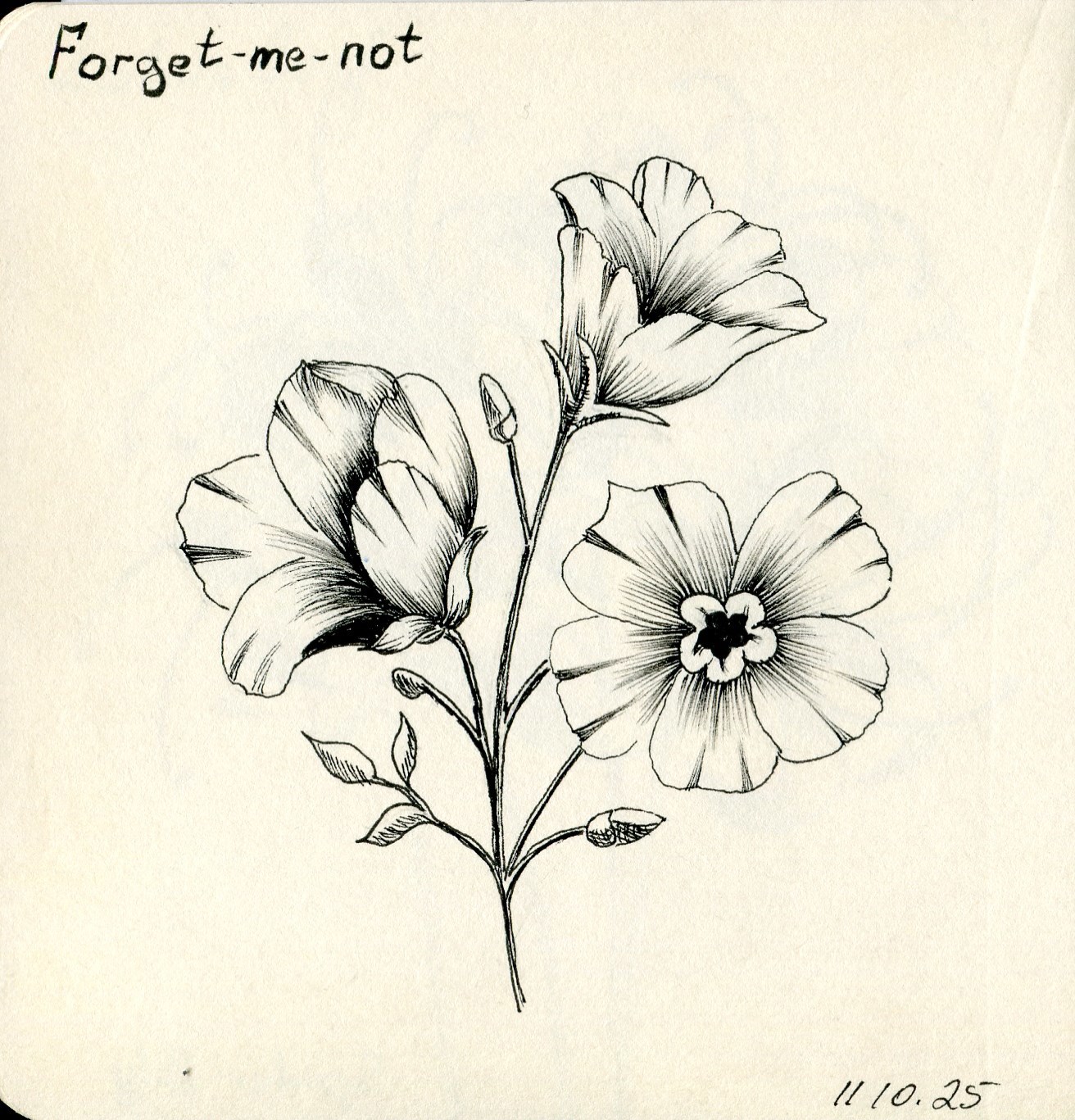 Незабудка - плантябрь 2025 Автор: Наталья Болдырева День одиннадцатый цветы, plantober, линеры, рисунок линером, inktober, графика 9 Пожаловаться