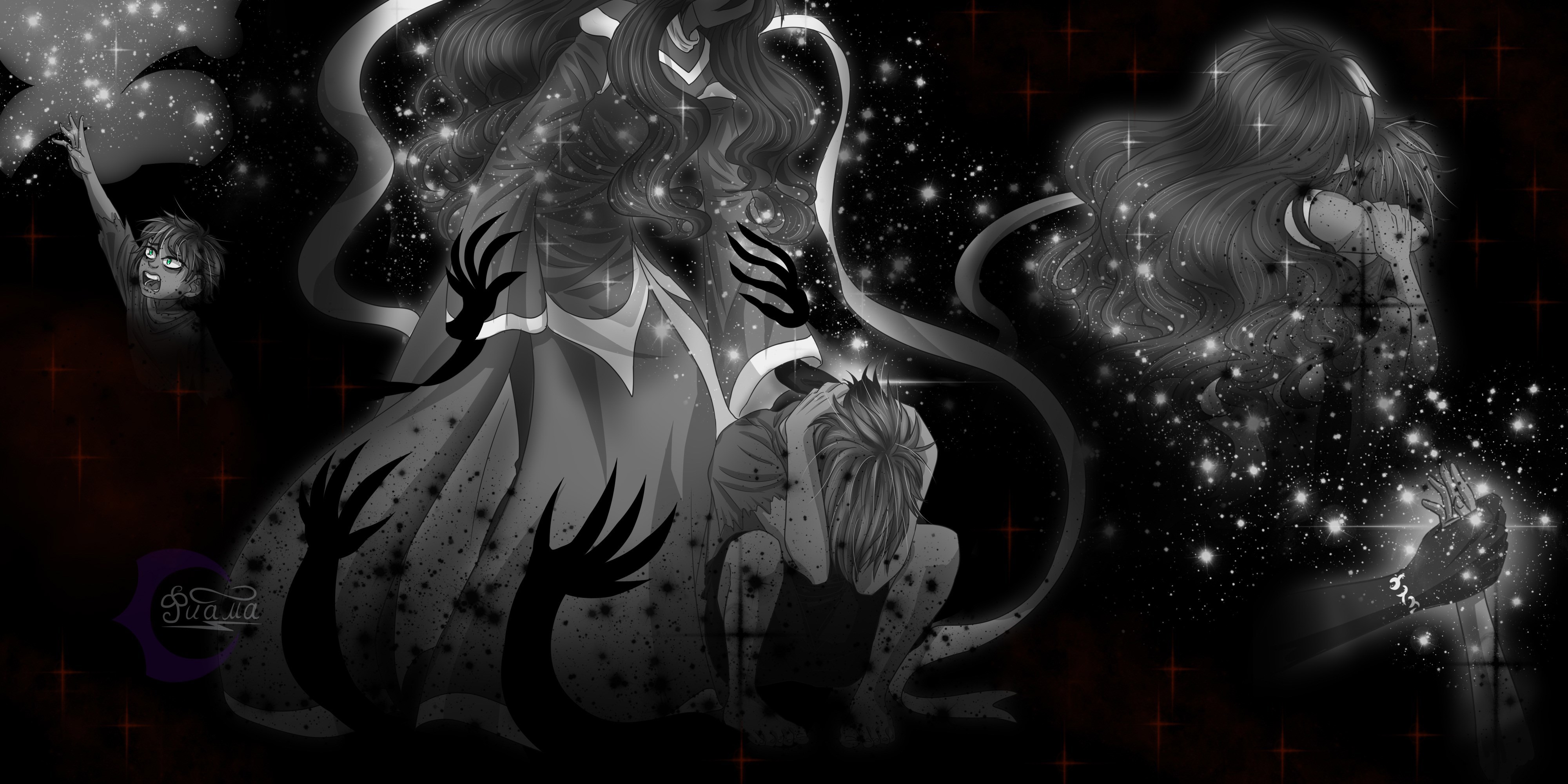 Иллюстрация к моменту из книги "Тень Ветра", когда Реми снился кошмар о тенях, что поглощали его и он не мог вырваться из их пут. Тогда Фиама благодаря дару эмпатии случайно погрузилась в чужой сон, увидела страдающего мальчика и захотела ему помочь.