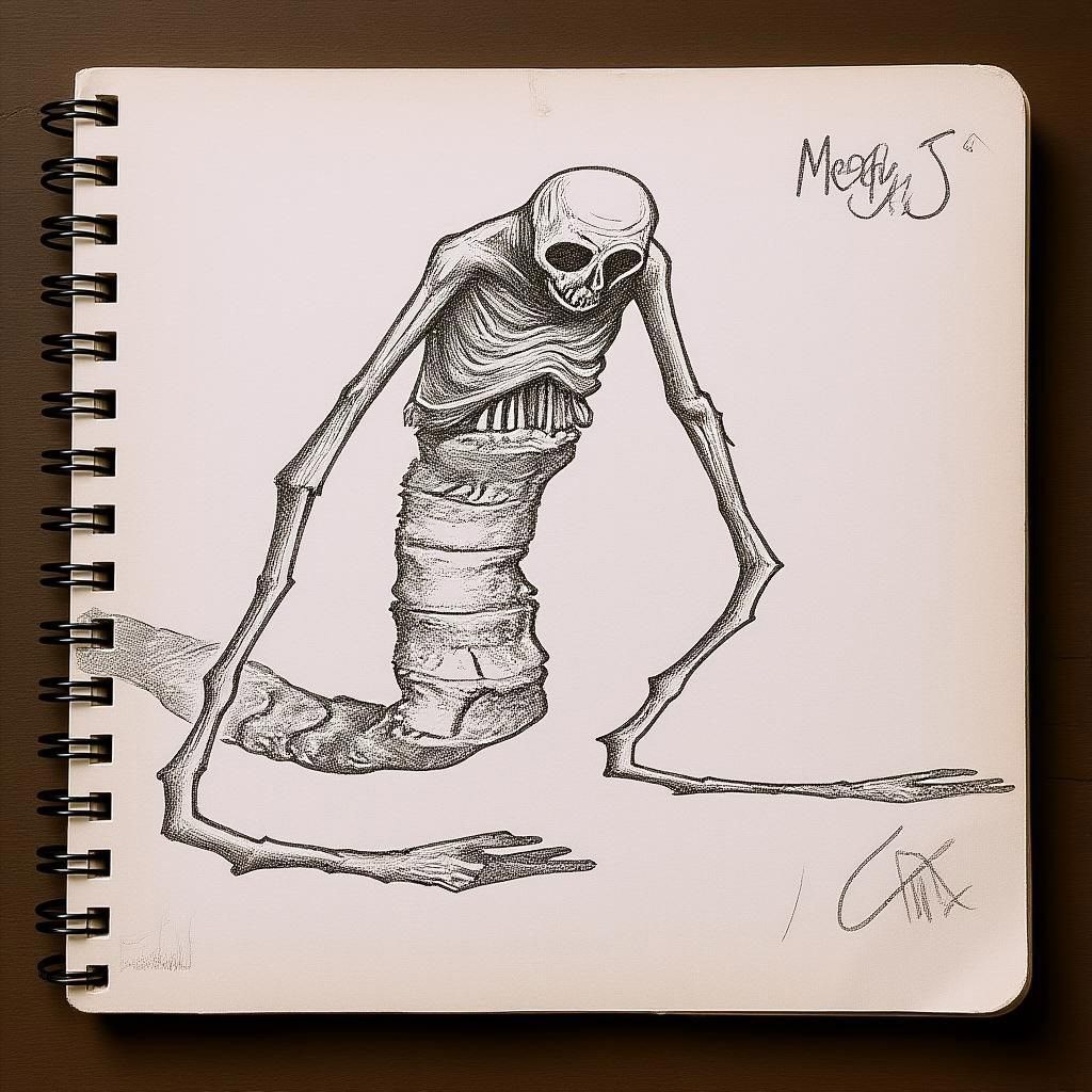"На пороге стоит старик. Высокий и тощий до противоестественности, его ребра выпирают из впалой груди частоколом, с них складками свисает дряблая серая кожа. Она покрыта волдырями и струпьями, болезненными язвами, из которых сочится гной и сукровица. Старик горбится. Он сгибается под потолком, выставляет вперед лицо, безобразное и кривое, с отвисшей на полметра челюстью. У старика нету глаз, вместо них – пустые глазницы, затянутые лоскутами кожи, она пришита к векам грубыми стяжками, небрежно и наспех. Носа тоже нет – он ввалился внутрь, превратился в безобразную дыру. Рот растянут в уродливом крике, в обезумевшем вопле и вечном голоде. Изо рта вразнобой торчат зубы, кривые и ржавые, как гвозди из доски. Снизу, сверху, со всех сторон, они переполняют собою пасть..."