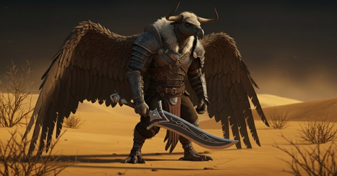 Раса: зверолюд, вологриф — пернатое существо с клювом и крыльями.