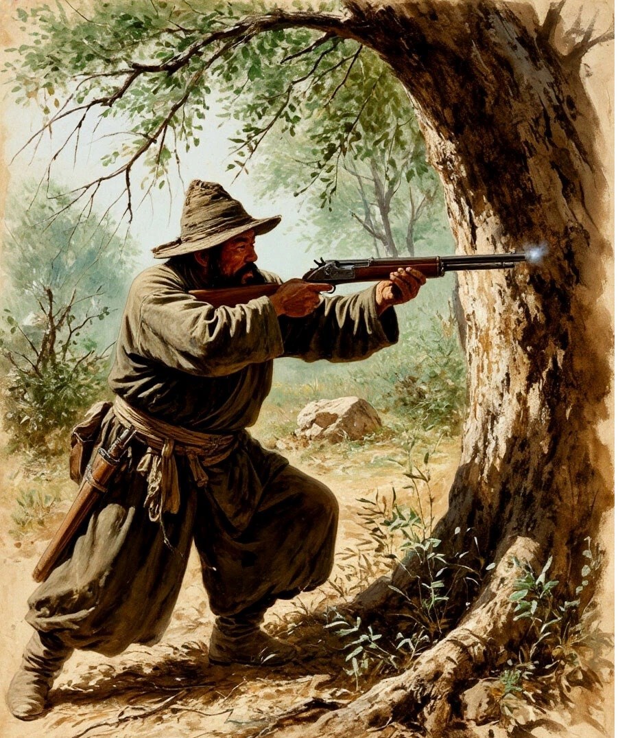 Старый хунхуз в засаде Автор: Александр Самойлов Засада - такое пленительное слово. На лесной тропе в самой чаще... графика, рисунок, арт, компьютерная графика, нейросеть 39 Пожаловаться