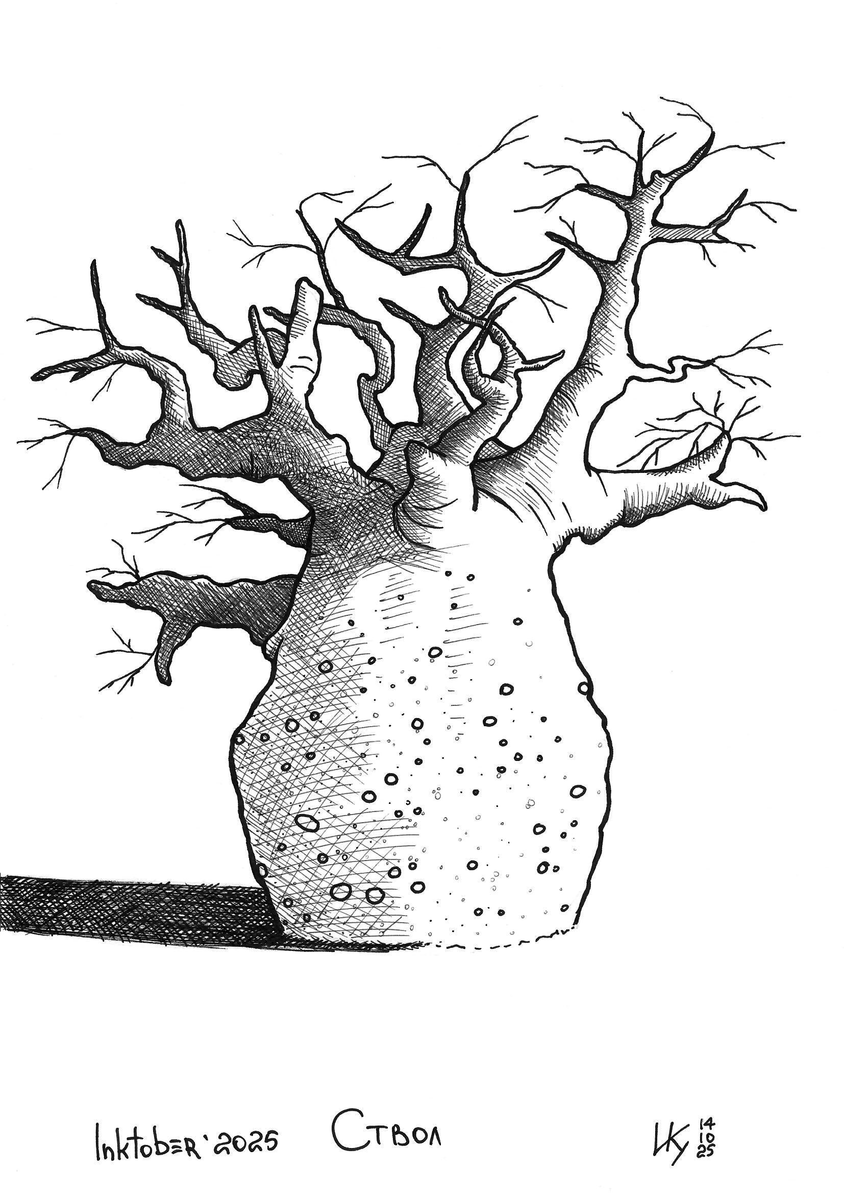 Когда не в состоянии изобразить револьвер, танк или хотя бы берданку, тогда надо рисовать тупо дерево. Вот хотя бы баобаб (он же жеожен, он же даодам).