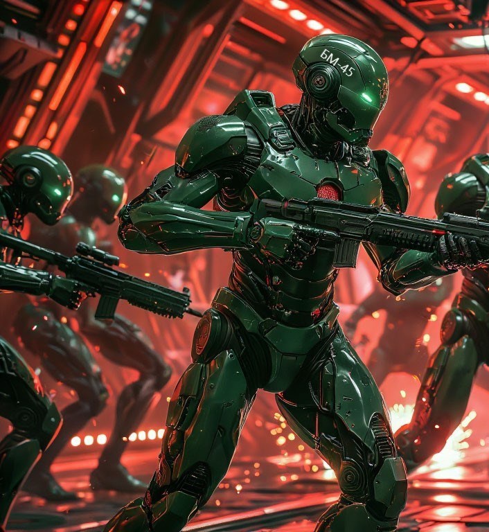 Арт. БМ-45 роботы, боевые машины 45-й модели с искусственным интеллектом. Созданные компанией "Техэнергопроект" для защиты баз на луне и марсе.