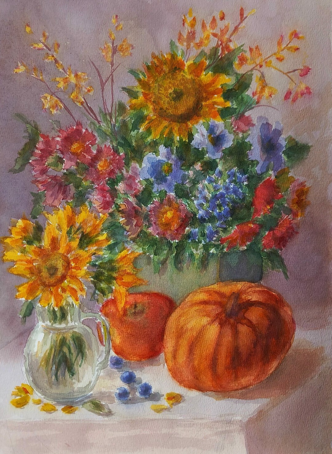 Осенний натюрморт Автор: Ольга Левонович Онлайн-курс "Цветовидение". Тема гармонии. Акварель на хлопковой бумаге 30х40. осень, акварель 30 Пожаловаться
