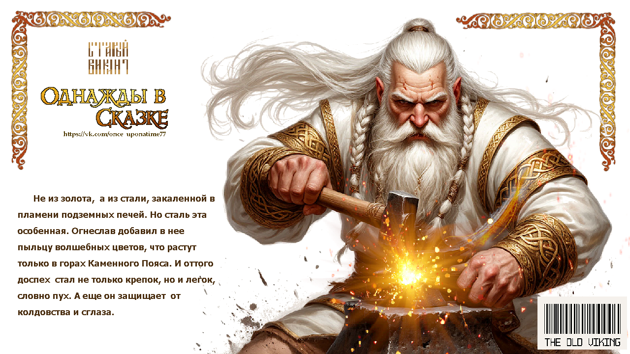 Илья пригласил Митю в избу и усадил на лавку. "Много лет назад, когда я еще не был богатырем, а лежал недвижим на печи, пришла ко мне чудь белоглазая. Не простая чудь, а мудрый и искусный в ремеслах. Звали его Огнеслав. Она-то и выковал мне этот доспех. "Не из золота, как ты думаешь, а из стали, закаленной в пламени подземных печей. Но сталь эта была особенная. Огнеслав добавил в нее пыльцу волшебных цветов, что растут только в горах Каменного Пояса. И оттого доспех мой стал не только крепок, но и легок, словно пух. А еще он защищает меня от колдовства и сглаза."