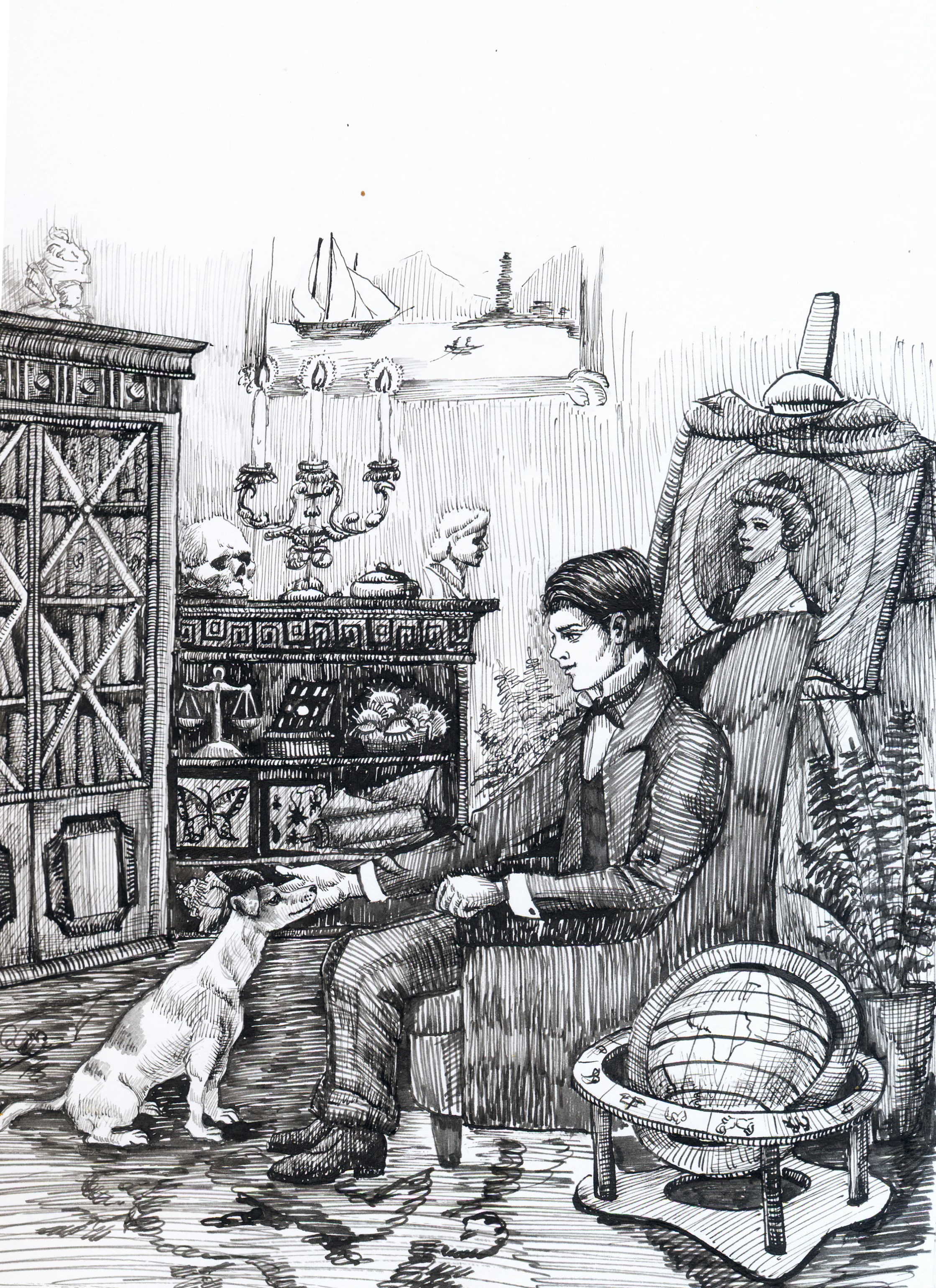 Артур. В гостях у путешественника Автор: С. Соловей Иллюстрация к 4-й главе «Армариус. В пасти книг». Художник: Анна Одинцова. Рисунок тушью.https://author.today/work/475821 тушь, 19 век, собака, путешествия, портрет, портрет персонажа, приключения, книжная иллюстрация, иллюстрация 41 Пожаловаться