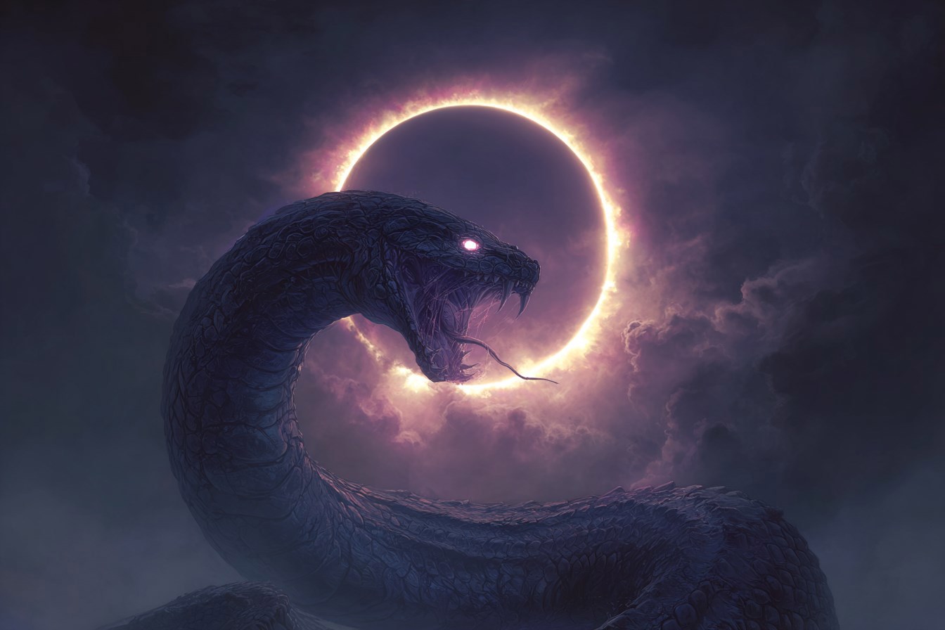А вот и Змея, которой Культ. Адхар, Крадущая Сны, Обгоняющая Время, Пожирающая Солнце. В начале я хотела называть тома по ее титулам, но потом передумала и второй том называется "Безликий Воин" и таким образом названия стали привязаны к персонажам, а не к Богине. Но я могу передумать и обратно)