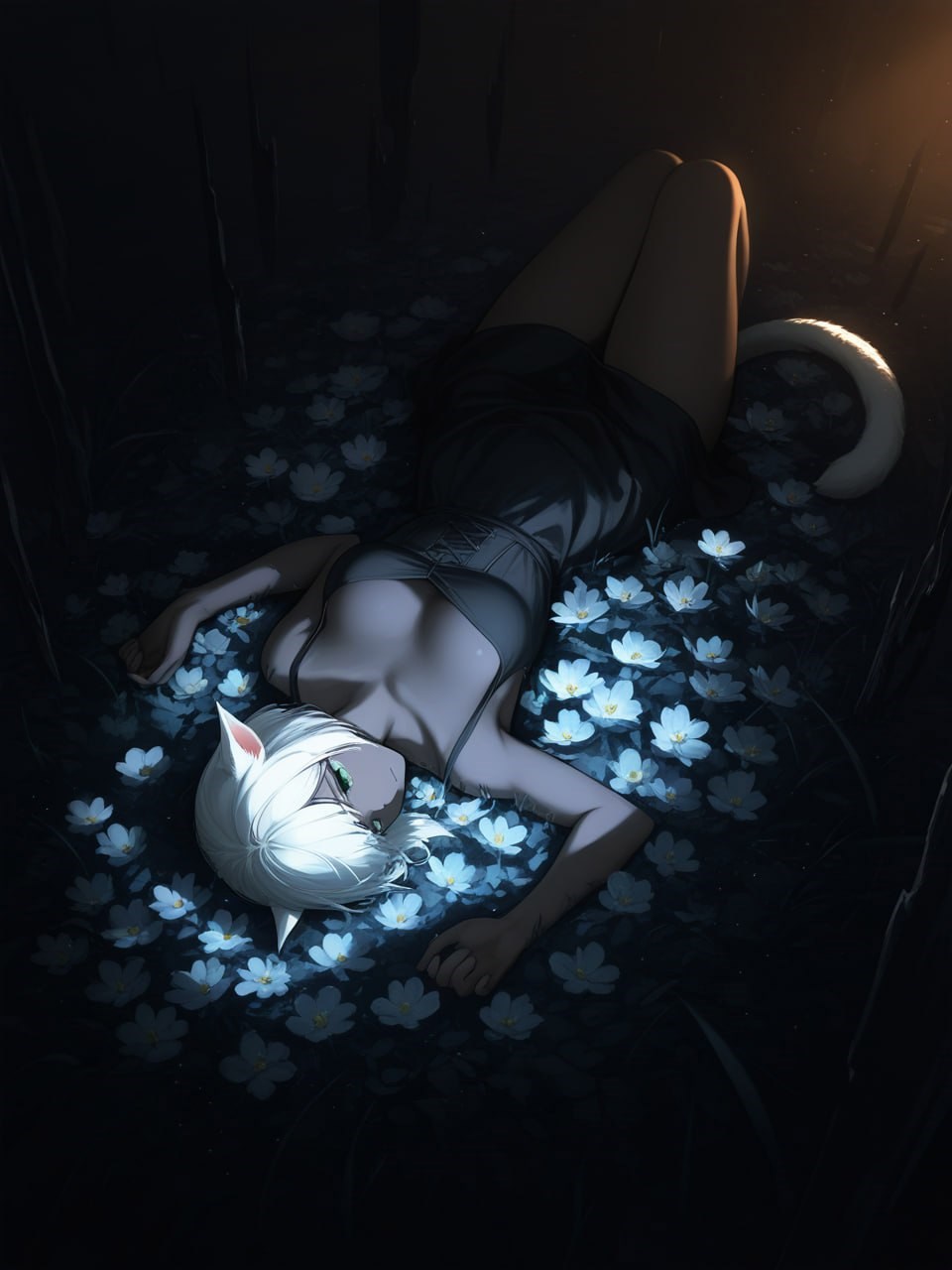 Не совсем Ичи, но очень понравилась иллюстрация. Наполненный толикой грусти взгляд; цветочная поляна, отдающая весенней прохладой; вечернее платье, тонко обрамляющее стройную фигуру; а ещё тёплые свет позади, так контрастно очерчивающий линию бедра)