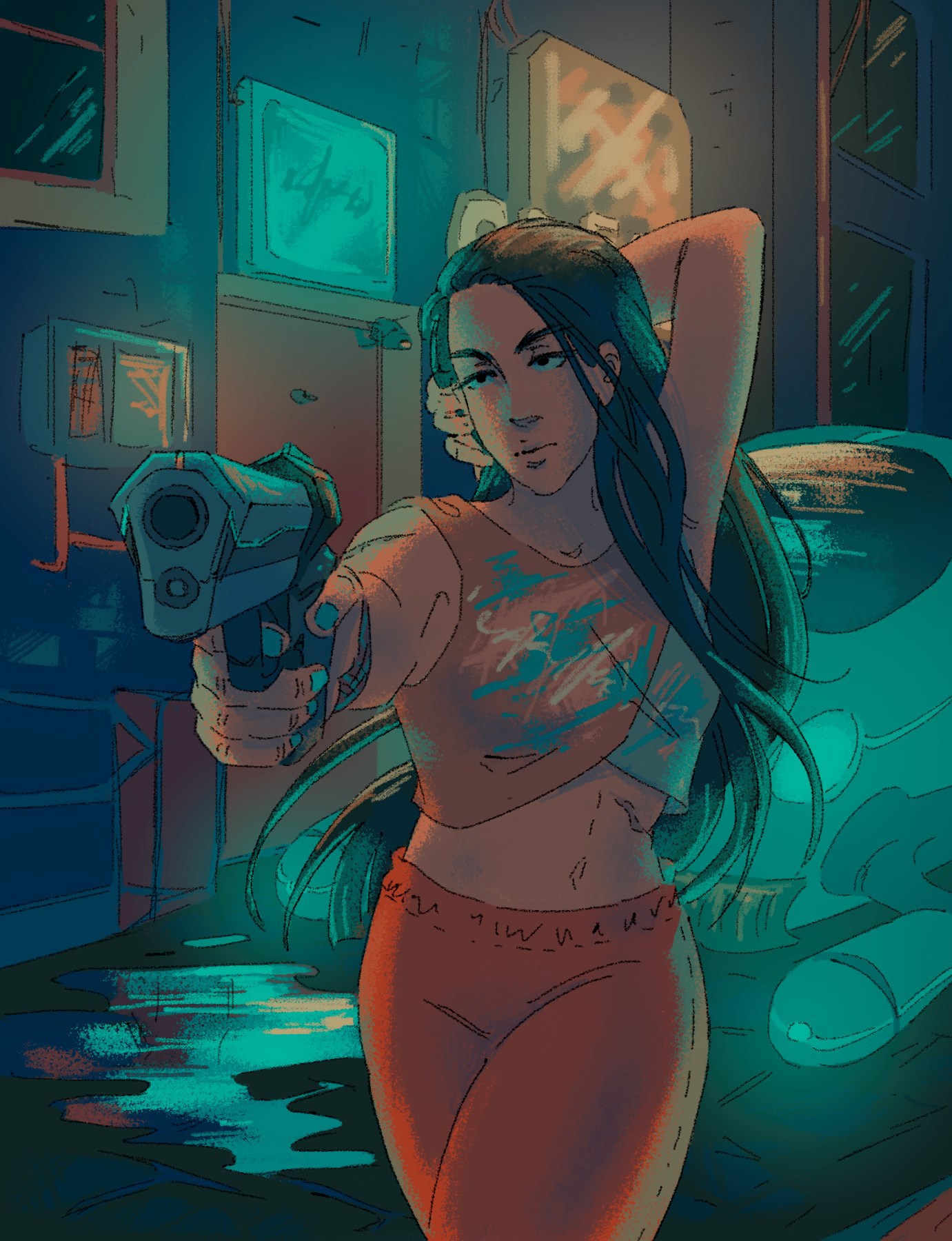 …Рури стреляет в ногу незадачливому грабителю с такой же лёгкостью, с какой делает всё в своей жизни. Розовые тапки с заячьими ушами и футболка с ананасами прибавляют ситуации сюра, и Лейб думает, что, возможно, ещё спит. Он зачем-то говорит, что это всё наверняка из-за последней закупки тарвия. Всё-таки не показалось, что какой-то мутный тип крутился рядом, наверное, он проследил, и… Что теперь с ним делать, сдать патрулю? С Рури не спросят за эту пушку? Рури улыбается. Лейб не знает, куда она утаскивает скулящего матом грабителя, и не спрашивает у неё после. Через неделю Рури так же улыбается, когда просит перевязать ей простреленное плечо…