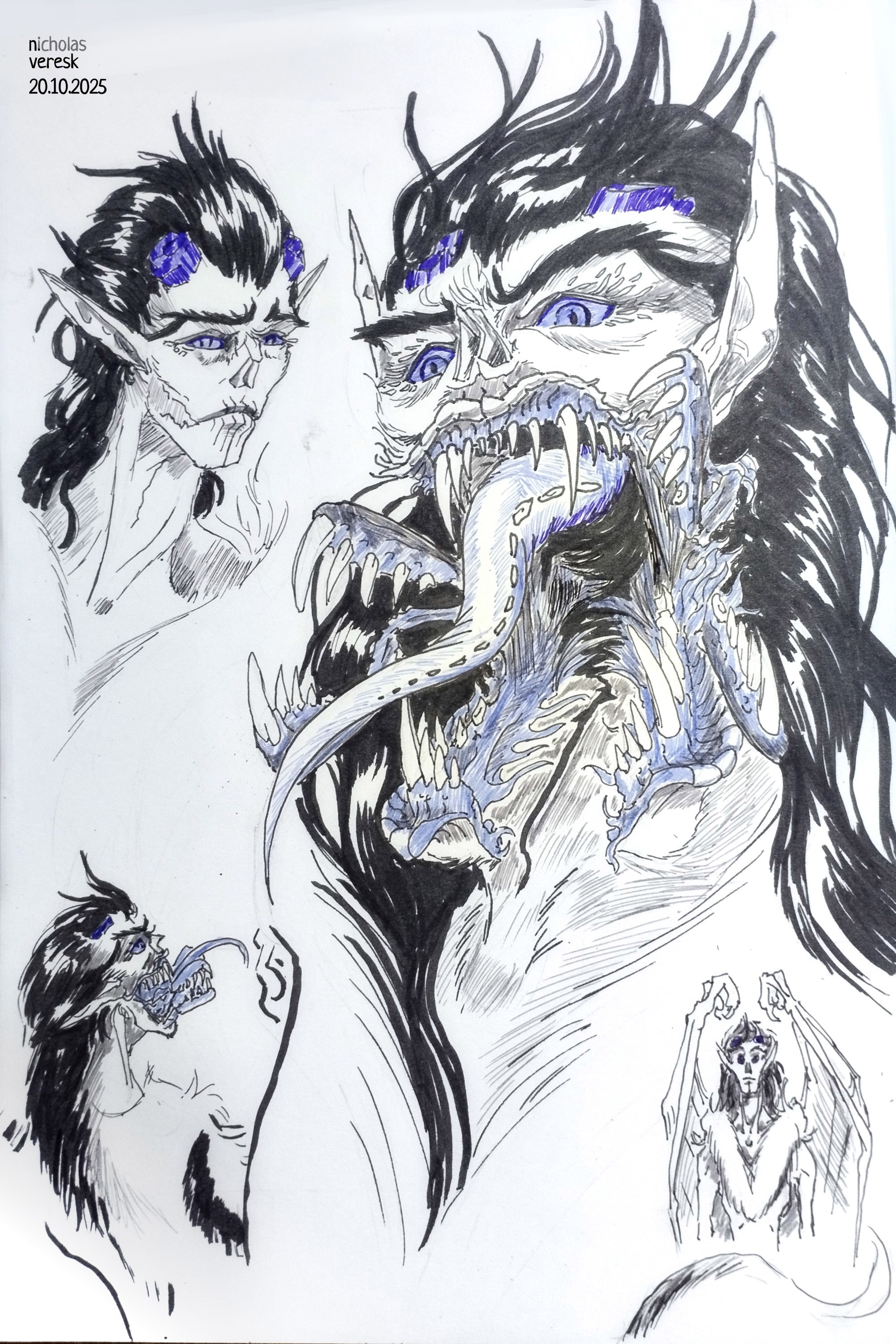 И другие его наброски Автор: Николай Вереск Захотелось разделить и опубликовать отдельно от первого. Практика, разрисовки, наброски и всё подобное. третьемир, традишка, монстр, арт, иллюстрация, персонажи 30 Пожаловаться