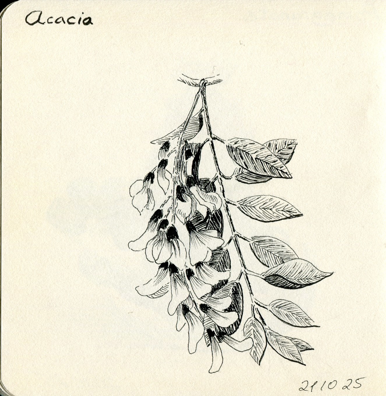 Акация - плантябрь 2025 Автор: Наталья Болдырева День двадцать первый. Относительно просто. plantober, линеры, рисунок линером, inktober, графика 28 Пожаловаться