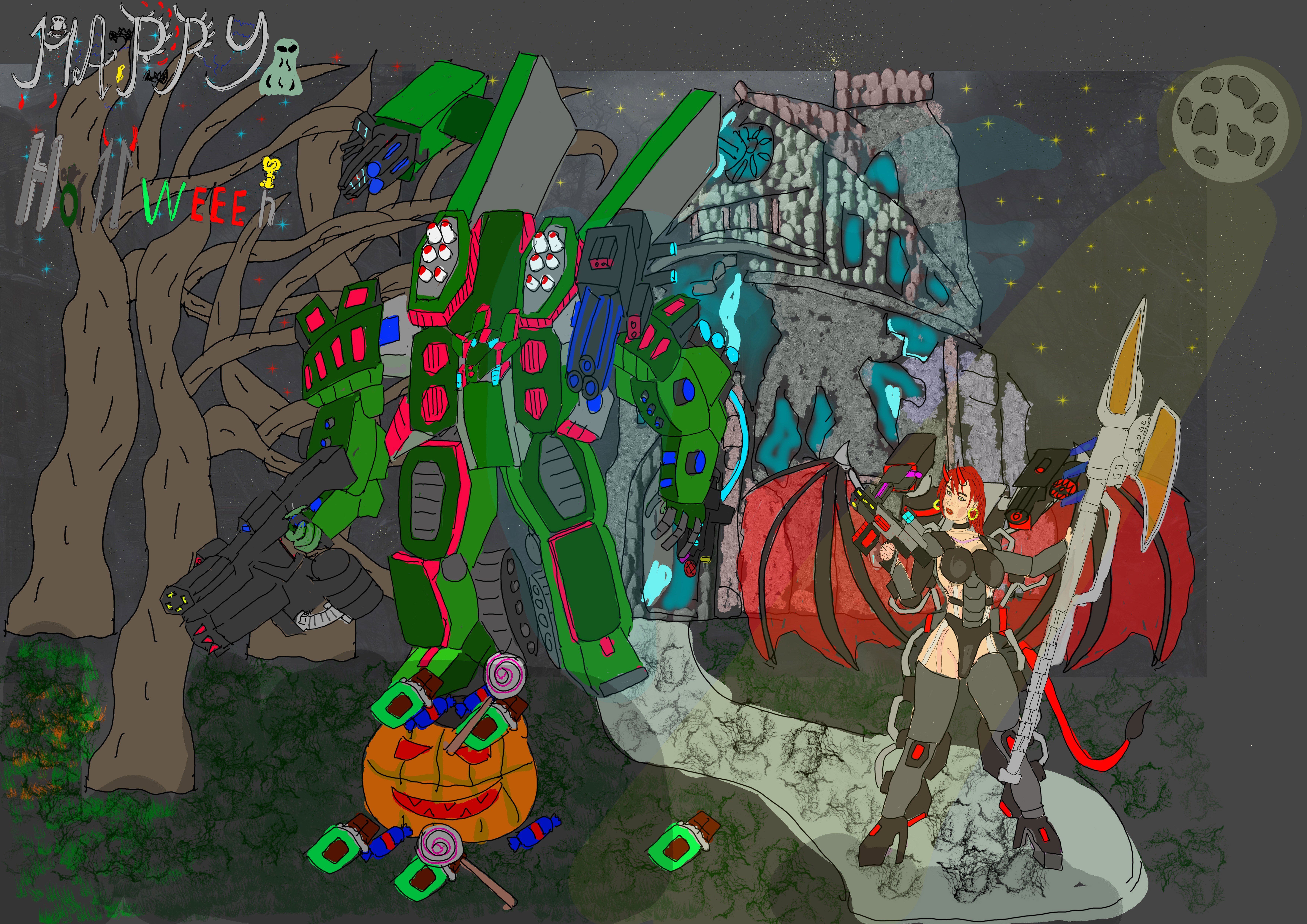 Самайн, красотки и мехи . Специально для фан сообщества игры Mecha Brake Автор: Гидеон Редмерри Мехи и девушки... любовь всей жизни меха, роботы, персонажи, иллюстрация 18 Пожаловаться
