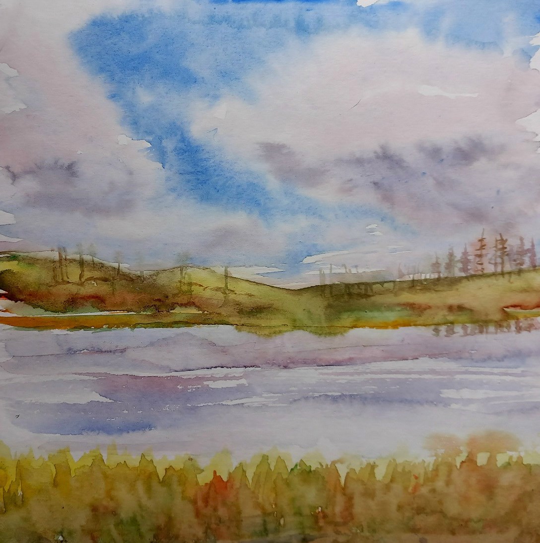 Северная осень Автор: Ольга Левонович Онлайн-курс "Цветовидение". Светлая тональность. Акварель 20х20. акварель 70 Пожаловаться