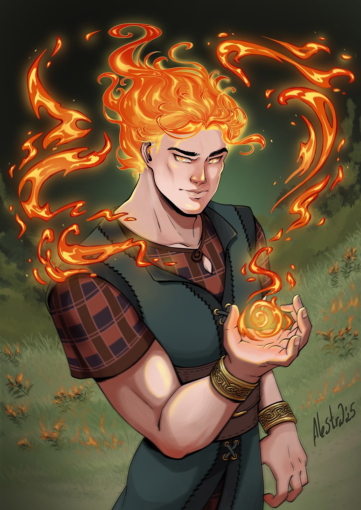 Слоану досталось наследие огненных фейри, благодаря чему он может управлять огнём. И из-за чего от малейшего проблеска недовольства его шевелюра обращается факелом. Потому он стрижёт волосы довольно коротко, хоть на Эрине и не принято. А характер у него по-настоящему взрывной. Став старше он, конечно, научился лучше контролировать эмоции. Почти...