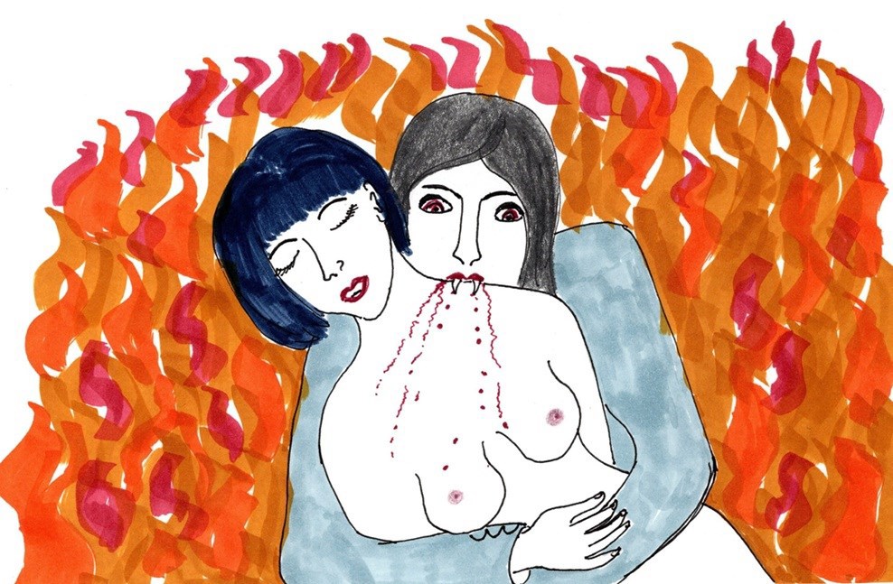 Inktober 2025 День двадцать пятый. Бушующий пожар (Inferno) Автор: Kristina Kamaeva Я как бушующий пожар!Его укус как сладкий лёд.Ручьями алыми на грудьПо шее кровь моя течёт. любовные приключения, writober2025, вампир, иллюстрация к стихотворению, inktober, инктобер, инктобер 2025 92 18+ Пожаловаться