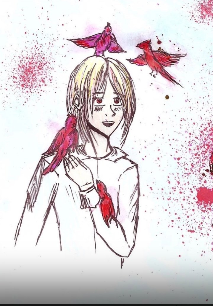 Данная иллюстрация была нарисована к рассказу Ориби Каммпирр "Сердце в перьях"