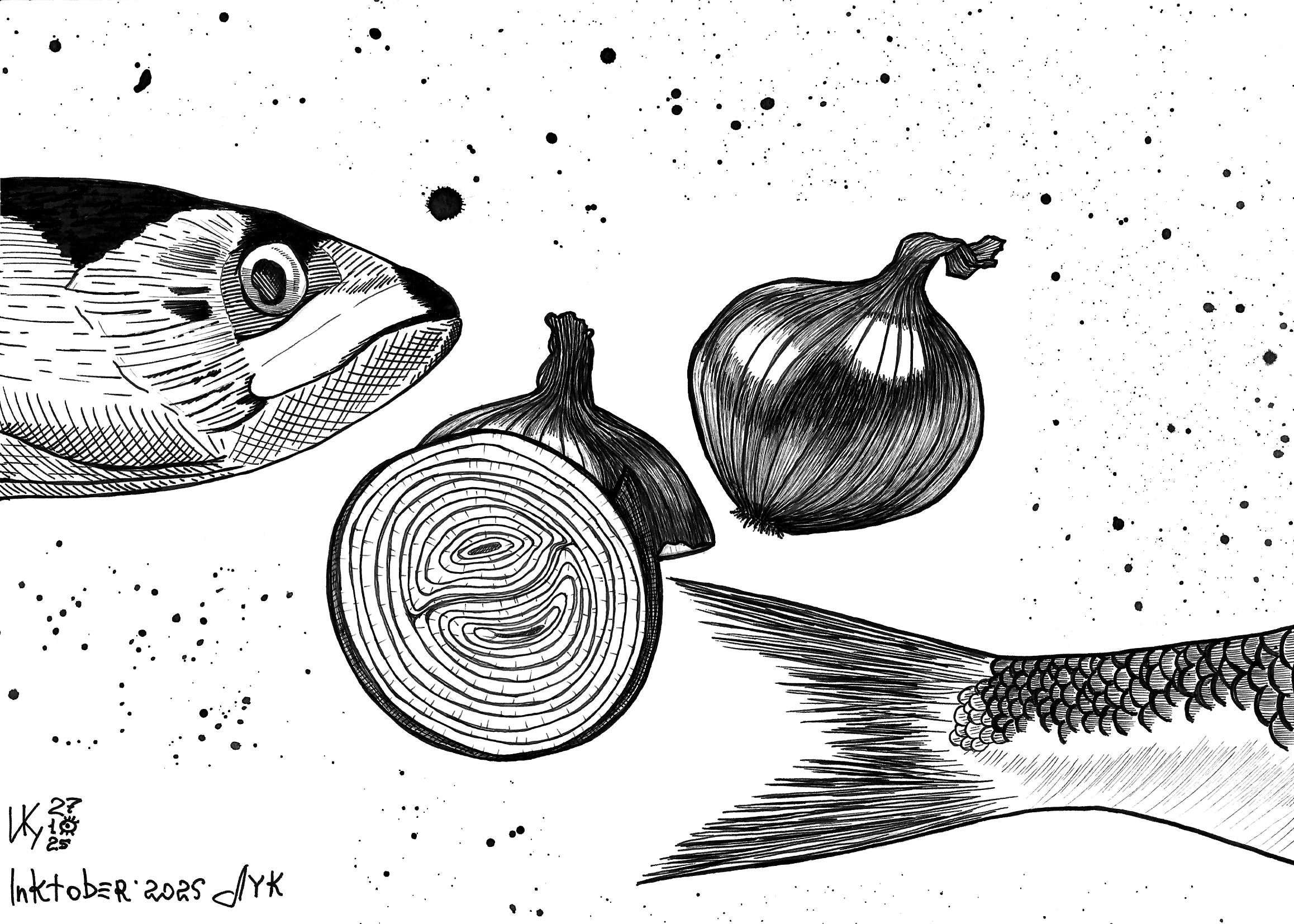 Инктобер 27/2025. Лук Автор: Ира Ку Натюрморт с луком и сельдью несерьёзныекартинки, inktober2025, блинкомом, инктобер2025, инктобер 63 Пожаловаться