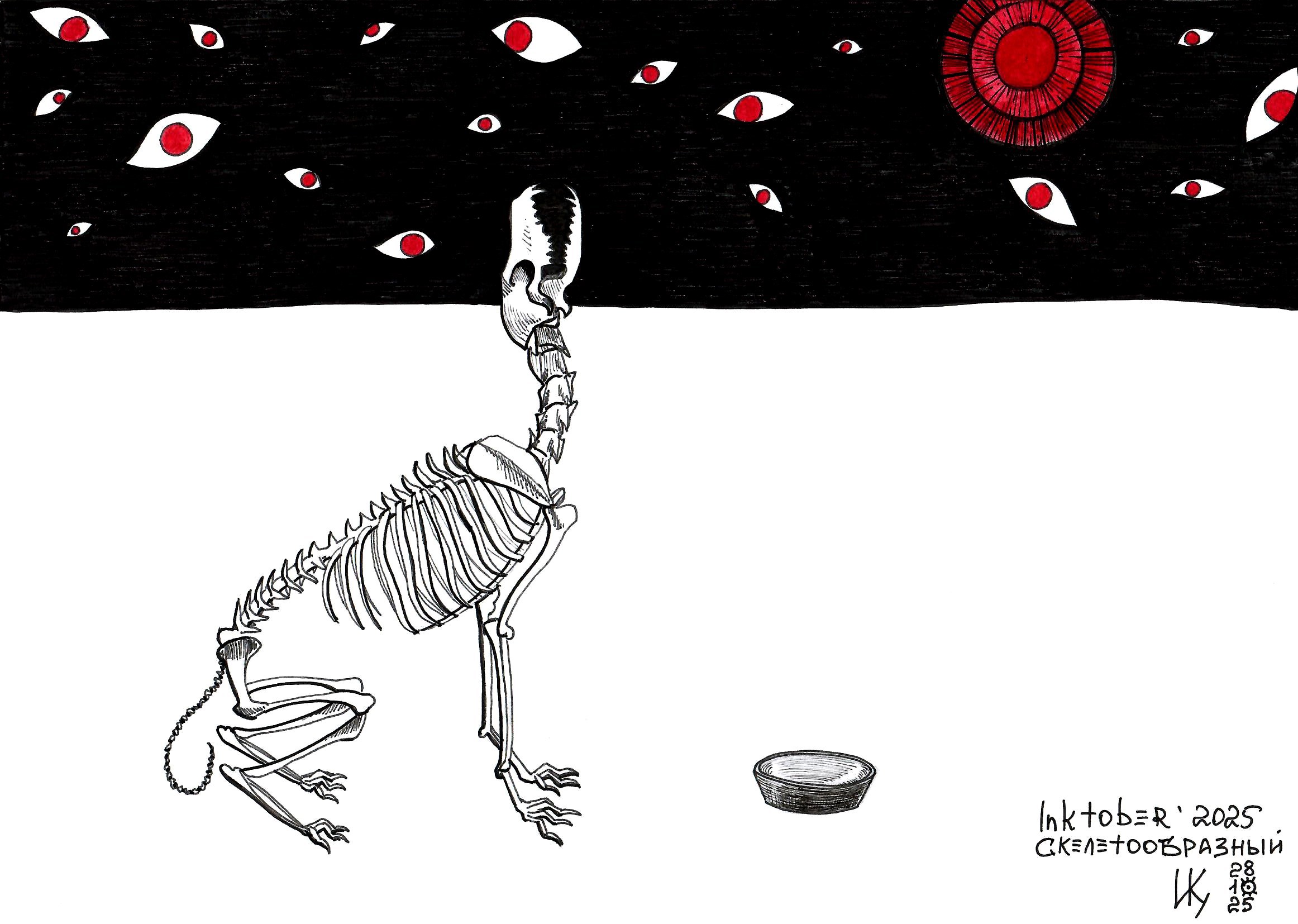Инктобер 28/2025. Скелетообразный Автор: Ира Ку Ещё 3 дня, ещё 3 картинки... и можно будет выдохнуть... несерьёзныекартинки, inktober2025, блинкомом, инктобер2025, инктобер 61 Пожаловаться