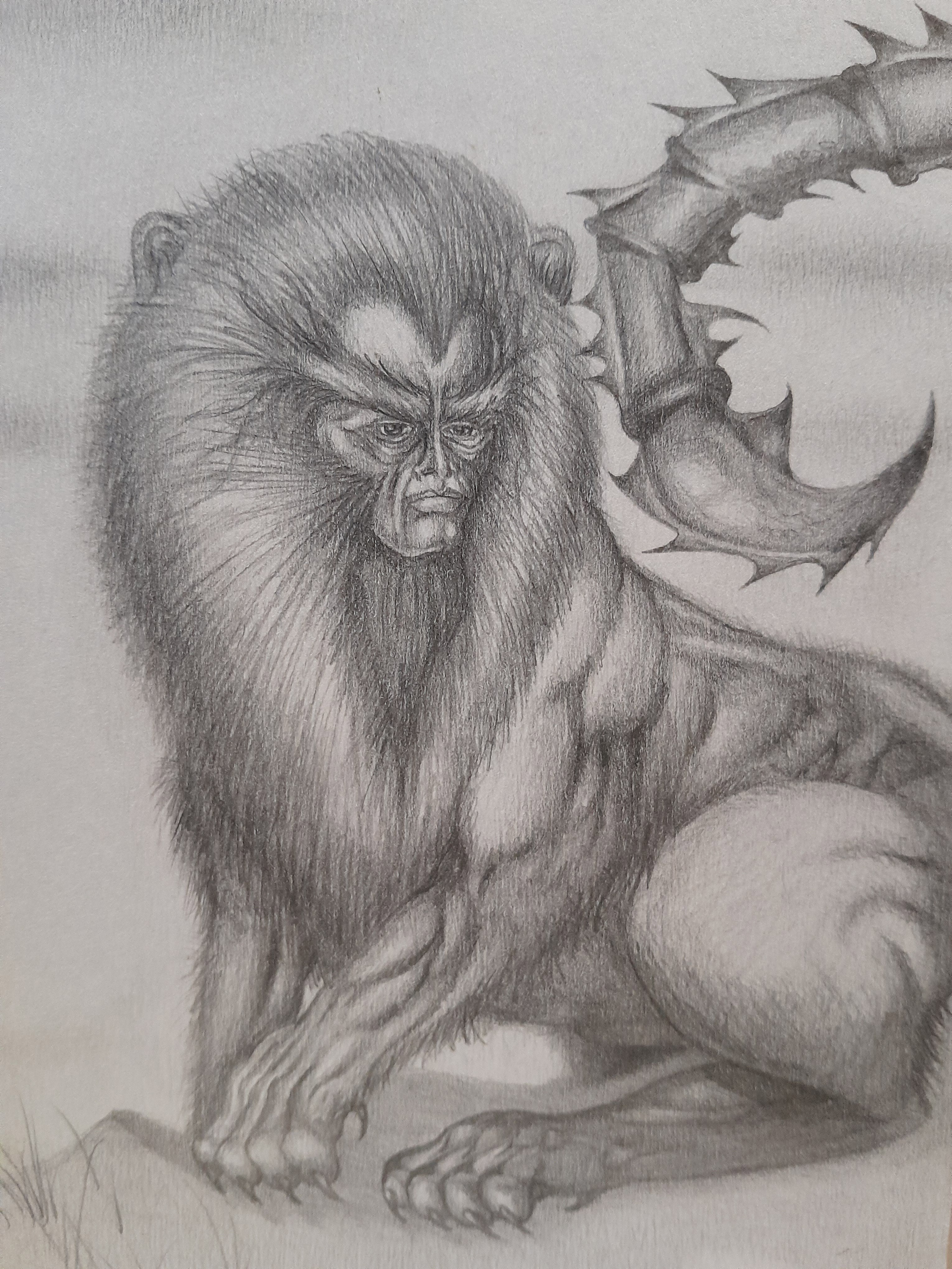 Мантикора Нумас Мор и четвёртая форма, турнирная. Дикие Мантикоры это крайне агрессивные одиночки. Их охотничьи угодья очень велики и друг к другу они проявляют больше всего агрессии, защищая свою территорию. Но все же обладая зачатками разума, для решения неизбежных конфликтов Мантикоры Лиго сформировали систему турниров, на которой определялось сколько территории может себе отхватить та или иная особь. Нумас Мор - Демиург. Оборотень. Он из прихоти выбрал себе тело Мантикоры, как самого сильного из созданных им существ. Более того путешествуя по созданному им миру, Нумас Мор вступал в схватки с другими сильными зверями, добавляя их преимущества в свой облик. Втянувшись в быт диких Мантикор. Нумас Мор вынужден был участвовать в турнирах. Чему он был несказанно рад, отшлифовывая форму до совершенства.