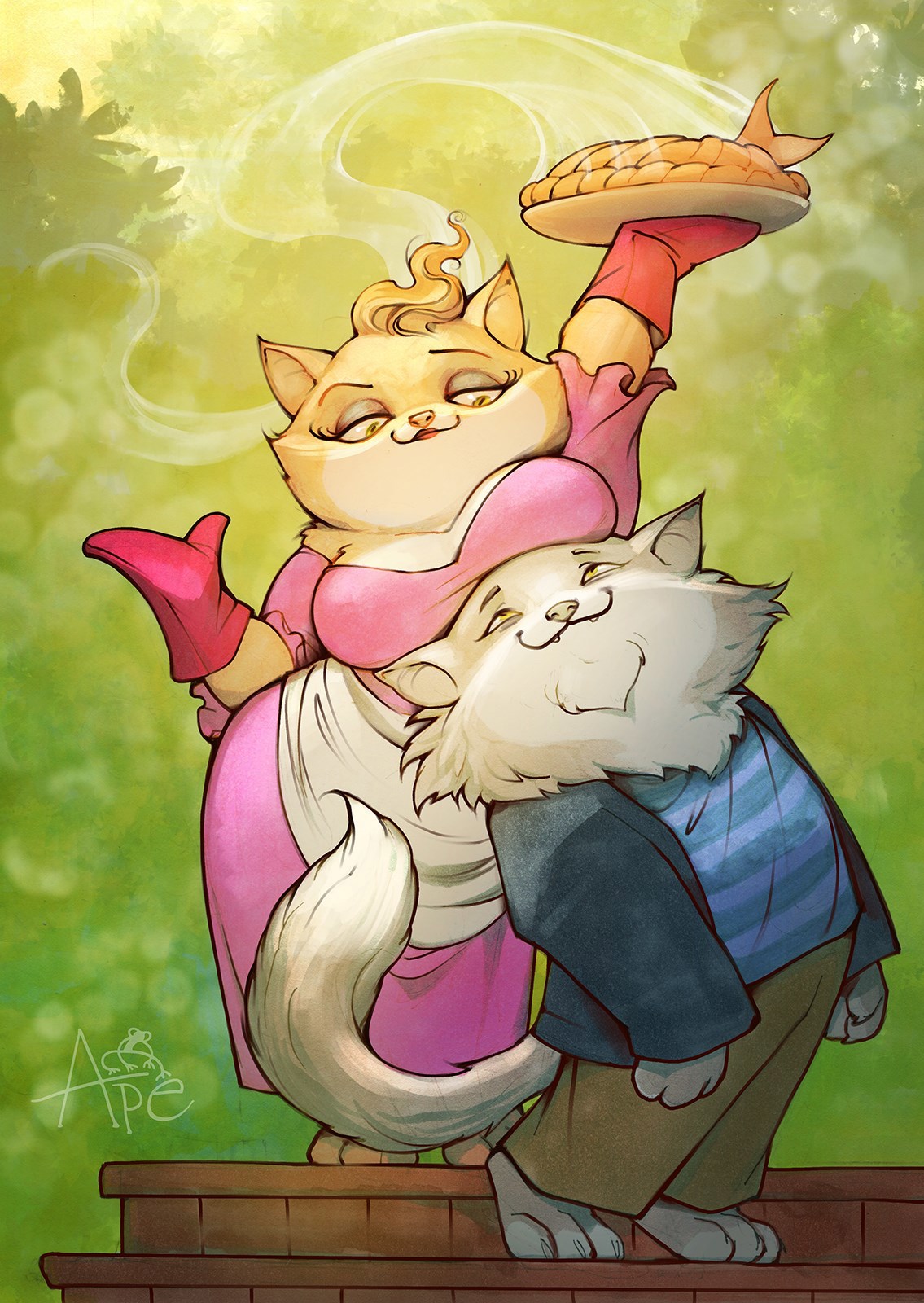 Рисовала сперва маркерами на бумаге, потом отсканировала и переползла дорисовывать в цифру, в Procreate