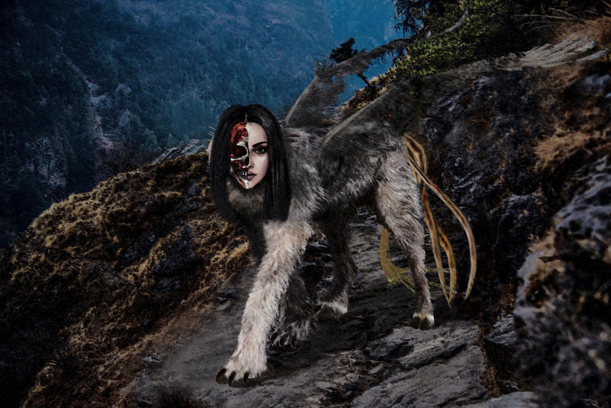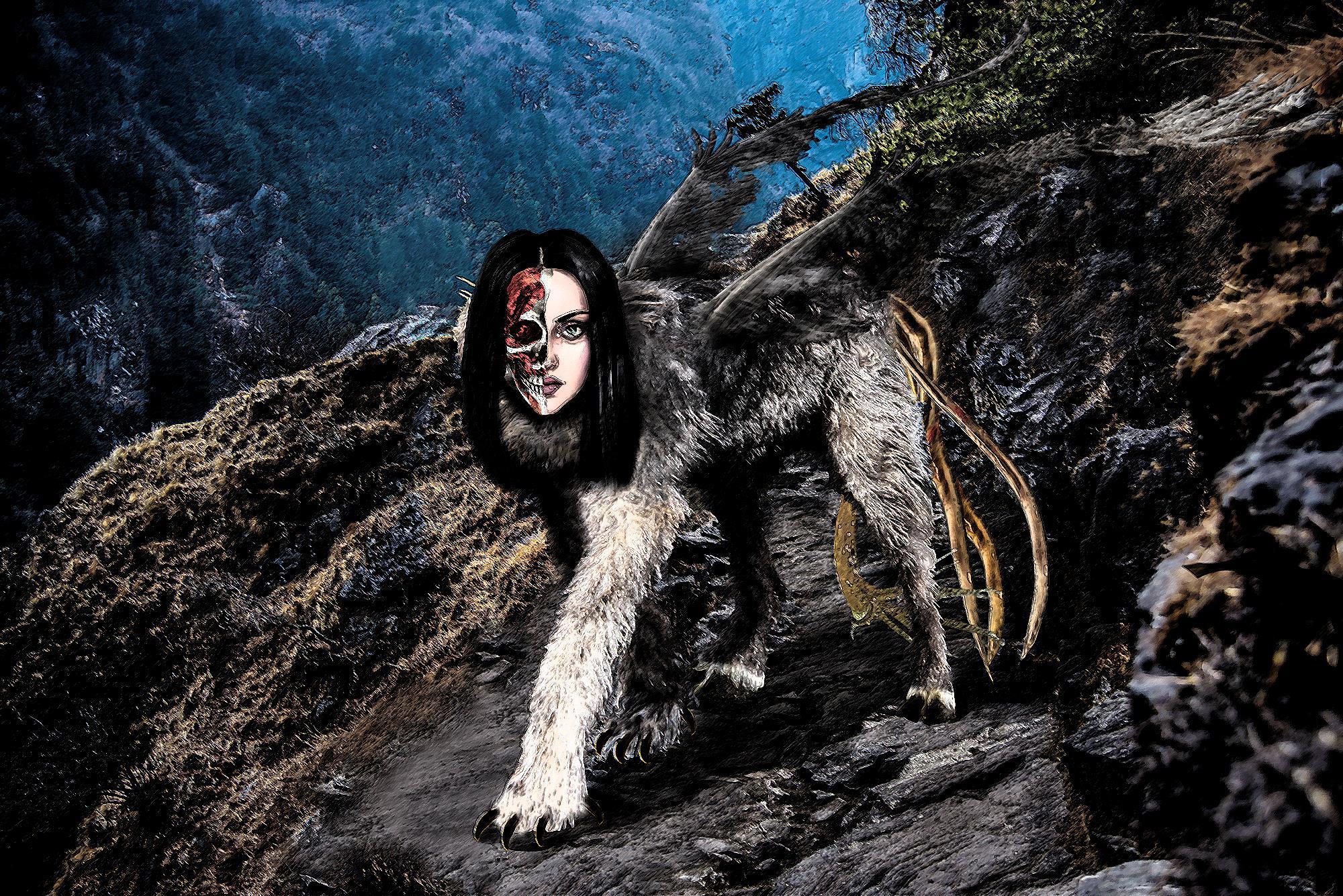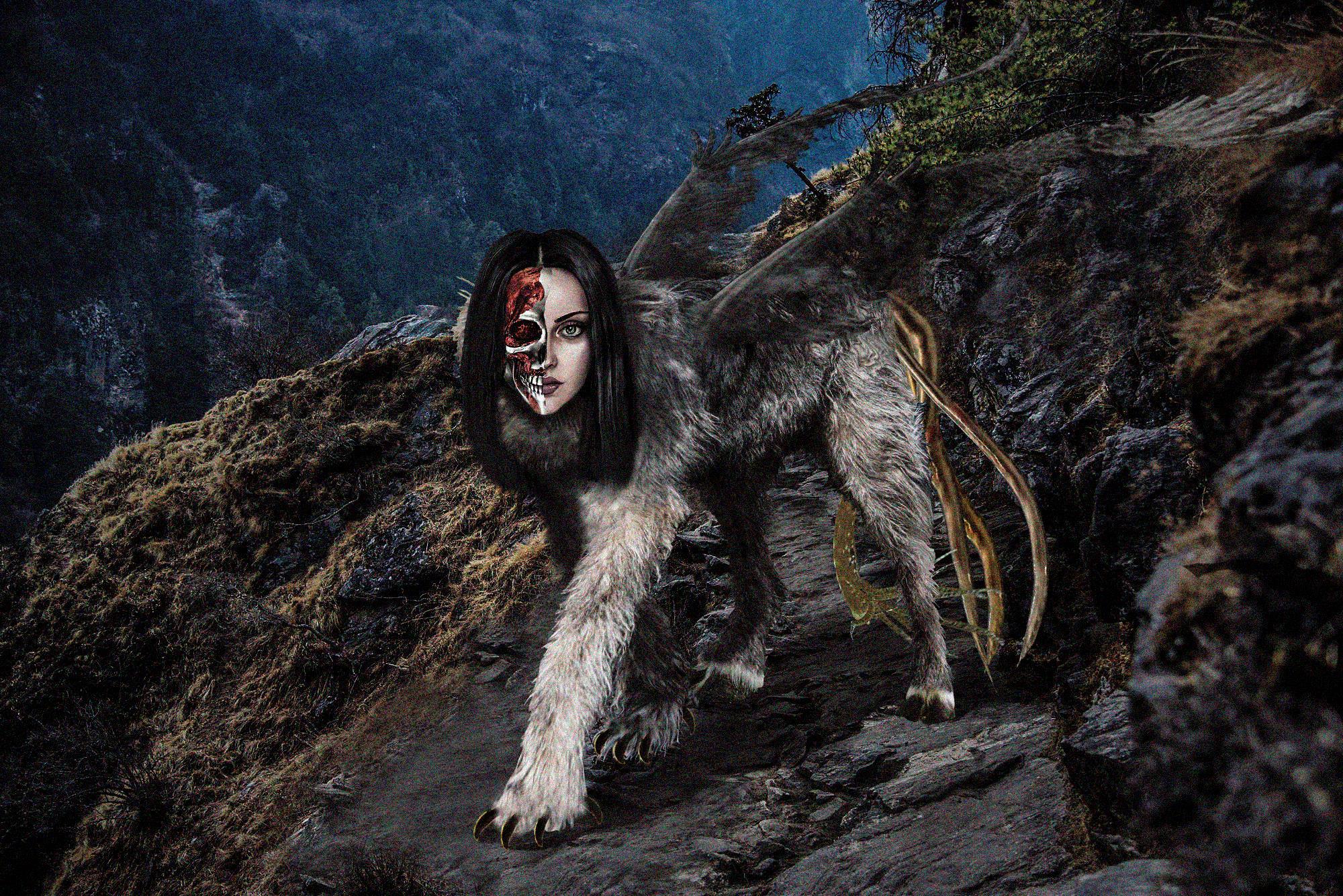 Оно шло вперёд, совершенно никуда не торопясь, медленно и грациозно переставляя большие лохматые лапы, острые изогнутые когти которых противно лязгали о каменное основание скалы при каждом шаге существа. Его тело, как впрочем и большие изорванные в клочья отростки, что когда-то, должно быть, служили ему крыльями, были так же целиком покрыты шерстью. Длинный чешуйчатый хвост, что внешне больше походил на скопище плоских червей, извивающихся, то и дело переплетающихся между собой, раскачиваясь, поочерёдно ударялся то об одну, то о другую заднюю ногу, которые, так же как у шетродисов, заканчивались мощными тяжёлыми копытами.