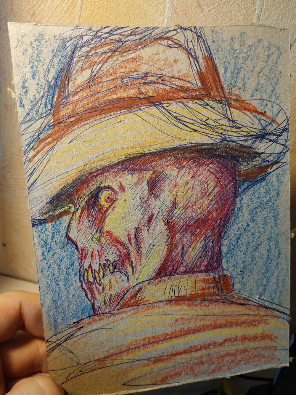 Рисовал давно, традиционно ручкой по куску картонки, потом цветными карандашами домузюкал, улучшайзингом не стал заниматься.
