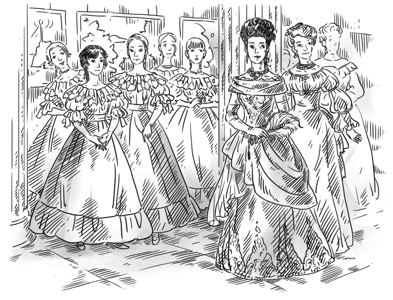 Визит Её Императорского Величества в учебное заведение под ее покровительством. Ну и всё, что положено: самодеятельность, выставка работ воспитанниц, а потом - танцевальный вечер.