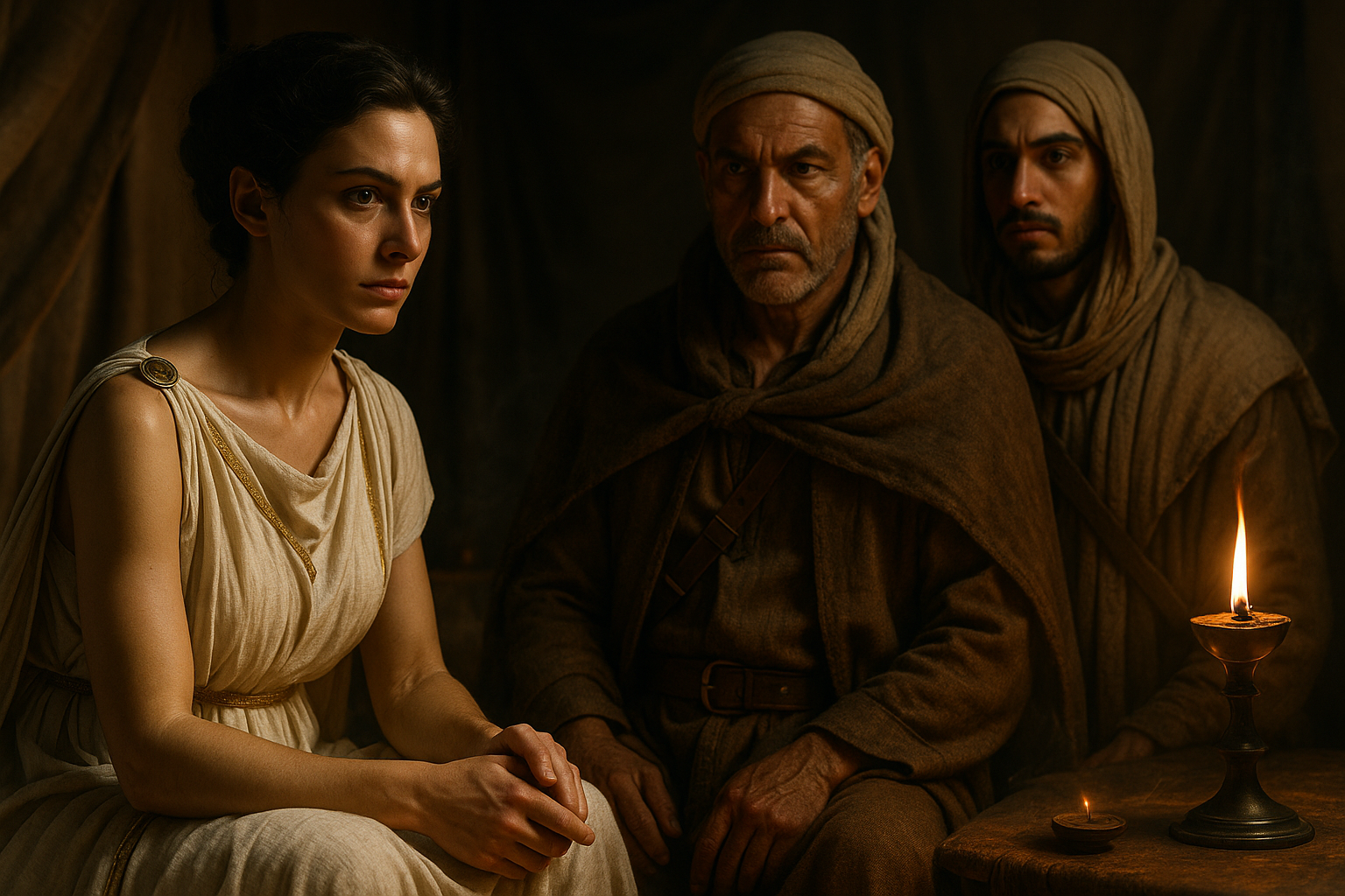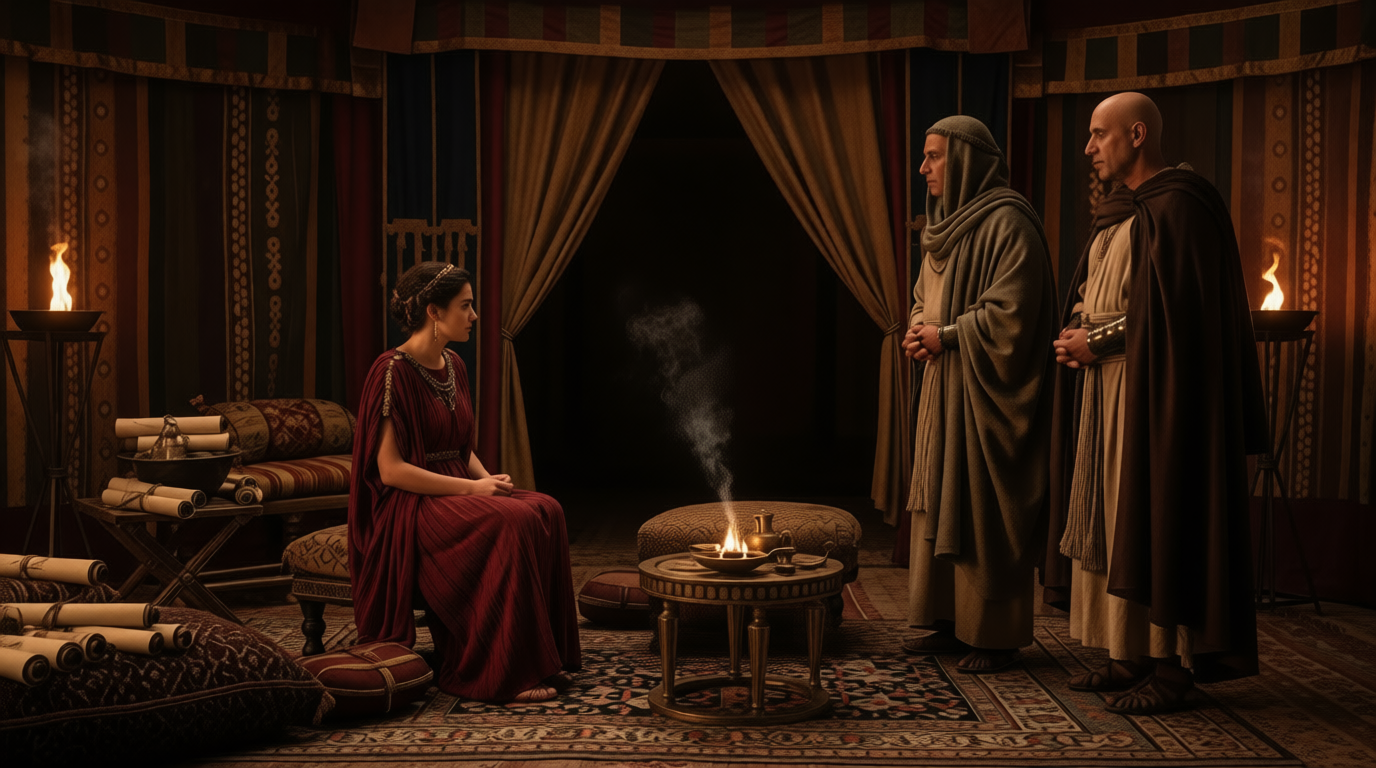 В то время как на берегу кипела работа, в глубине лагеря, в походной палатке Таис Афинской, пахнущей дорогими благовониями и кожей, царила иная, тайная атмосфера. Хозяйка, завернувшись в простой хитон, стоивший как усадьба под её родным городом, ждала. Её пальцы нервно перебирали складки ткани. «Хранители» действовали на ощупь, их сеть в Азии была тонкой паутиной, и передать сообщение нужным людям среди египетских жрецов во время войны было непросто. И то, что они откликнулись, уже было знаком.
