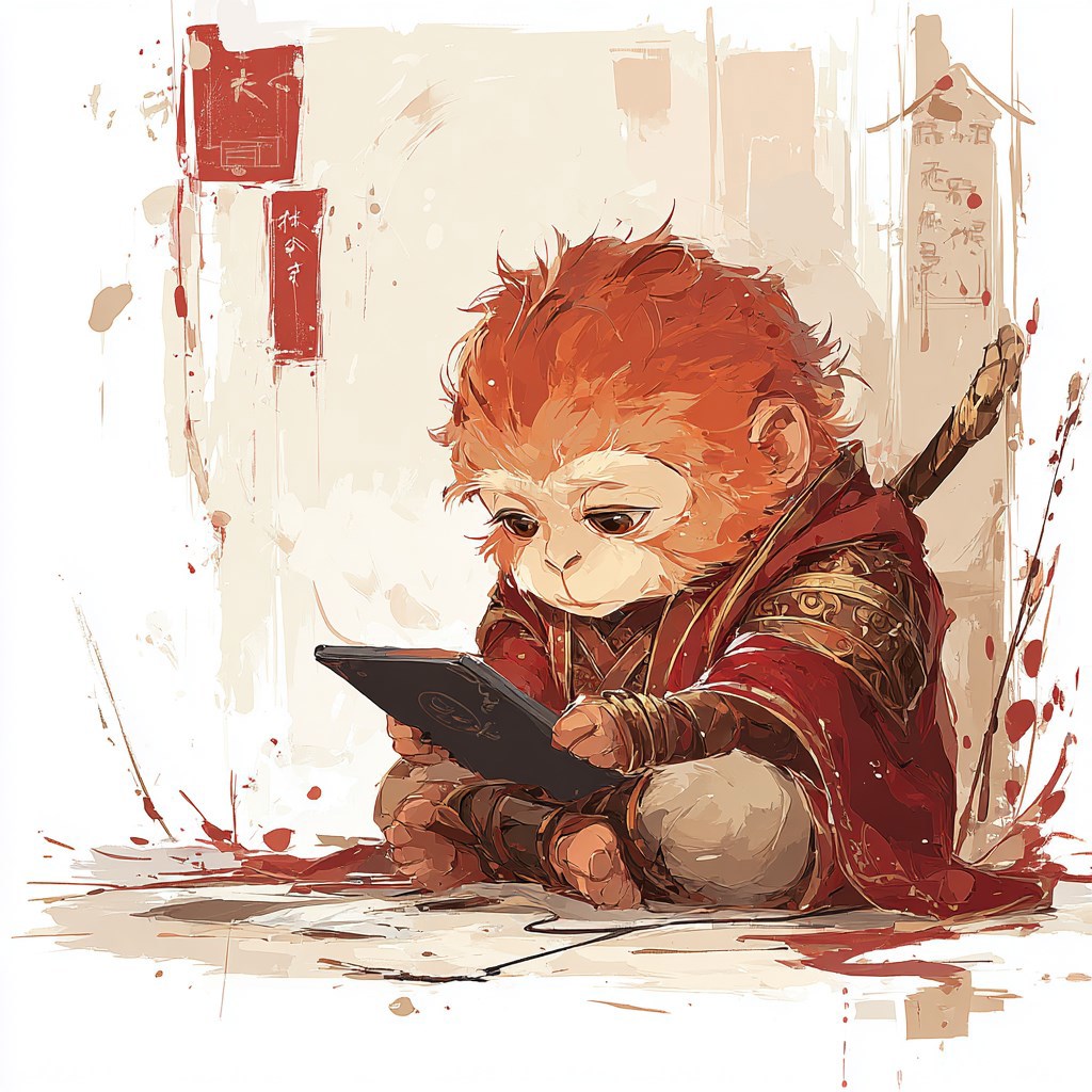 An orange monkey counts reviews of a fantasy book. --chaos 20 --sref 3736218010 --profile ajdobjp --stylize 300